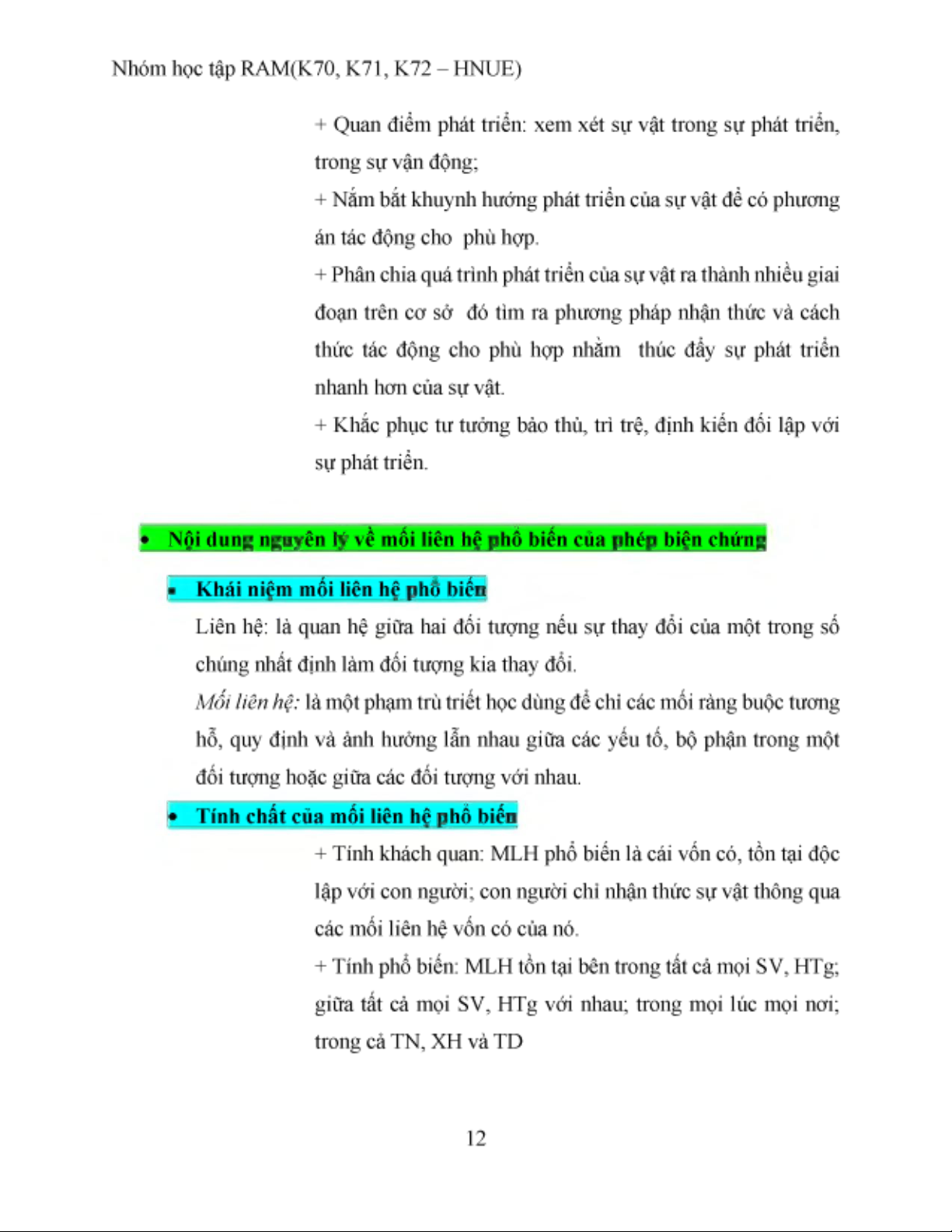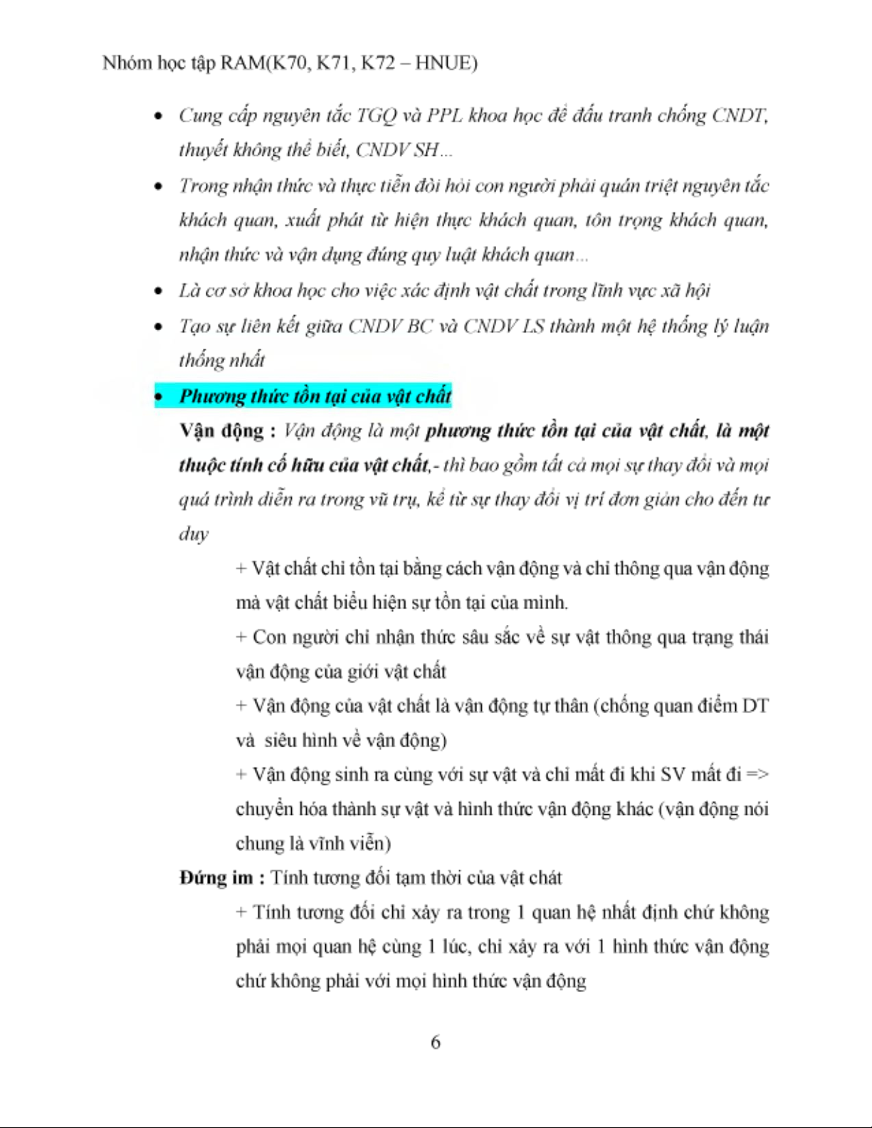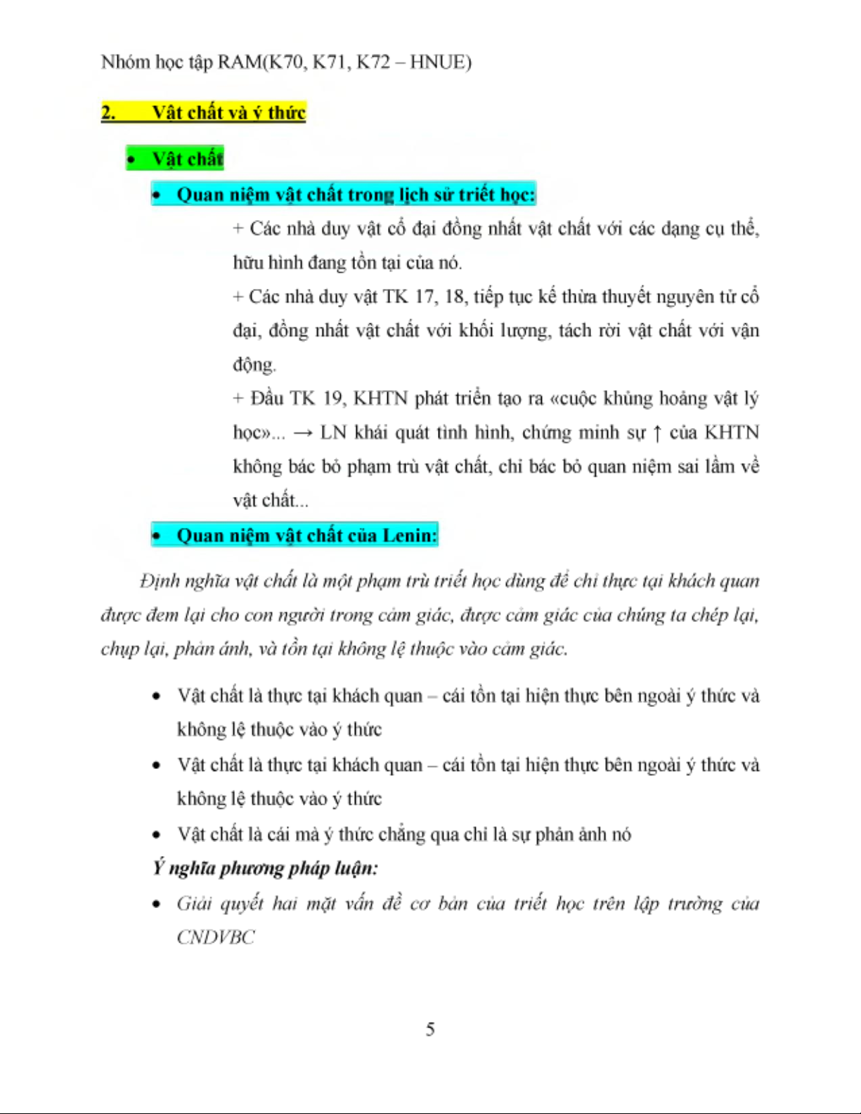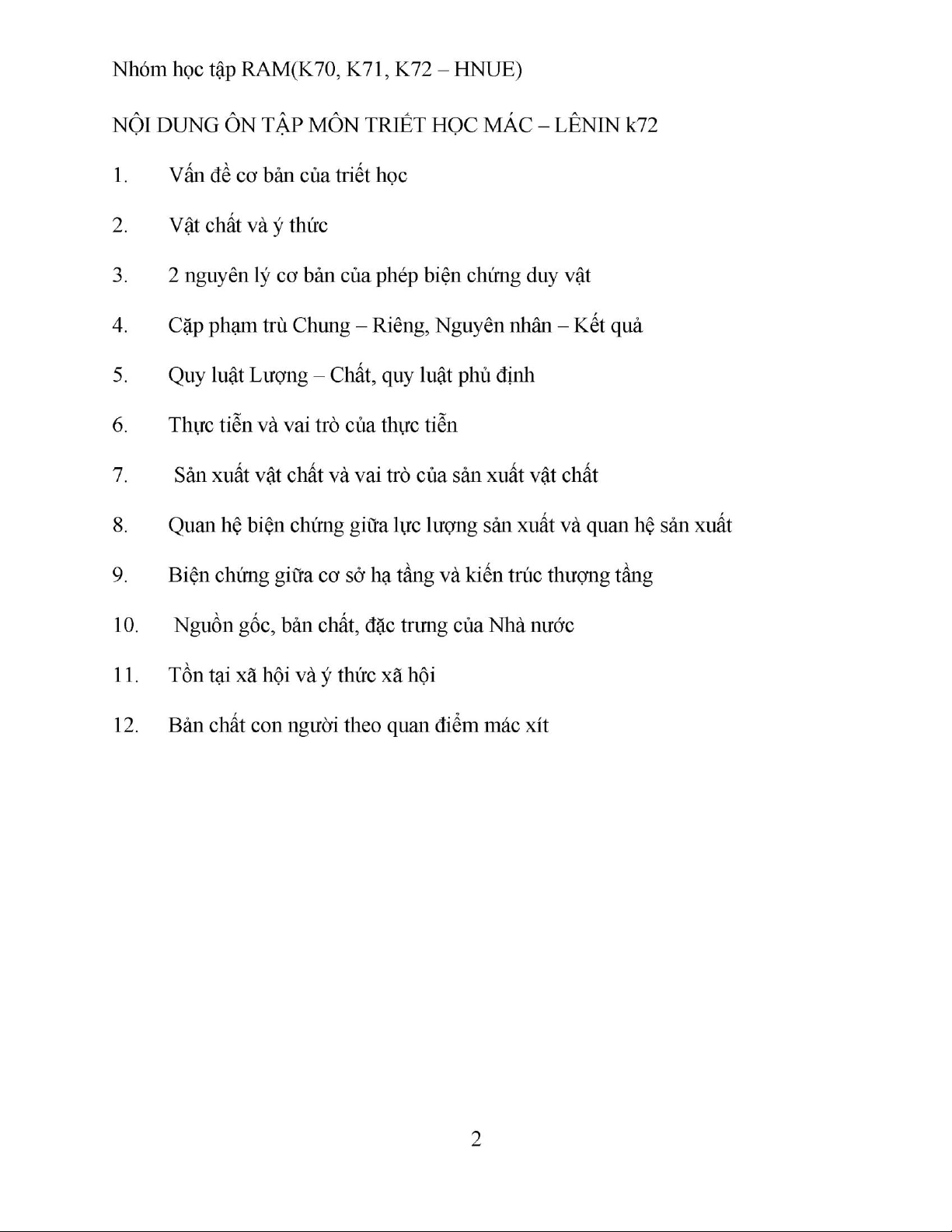 NỘI DUNG ÔN TẬP MÔN TRIẾT HỌC MÁC - LÊNIN k72 1 .