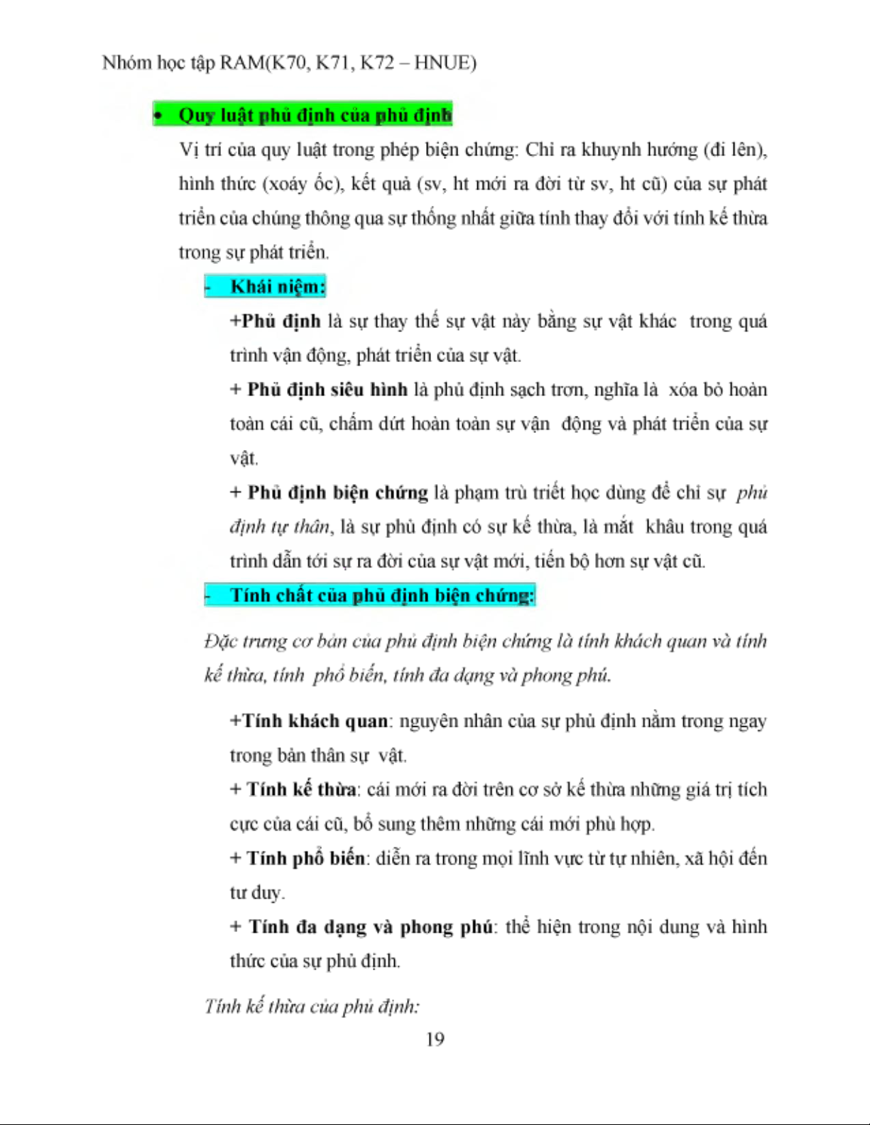 + Tính kế thừa : cái mới ra đời trên cơ sở kế thừa những giá trị tích
