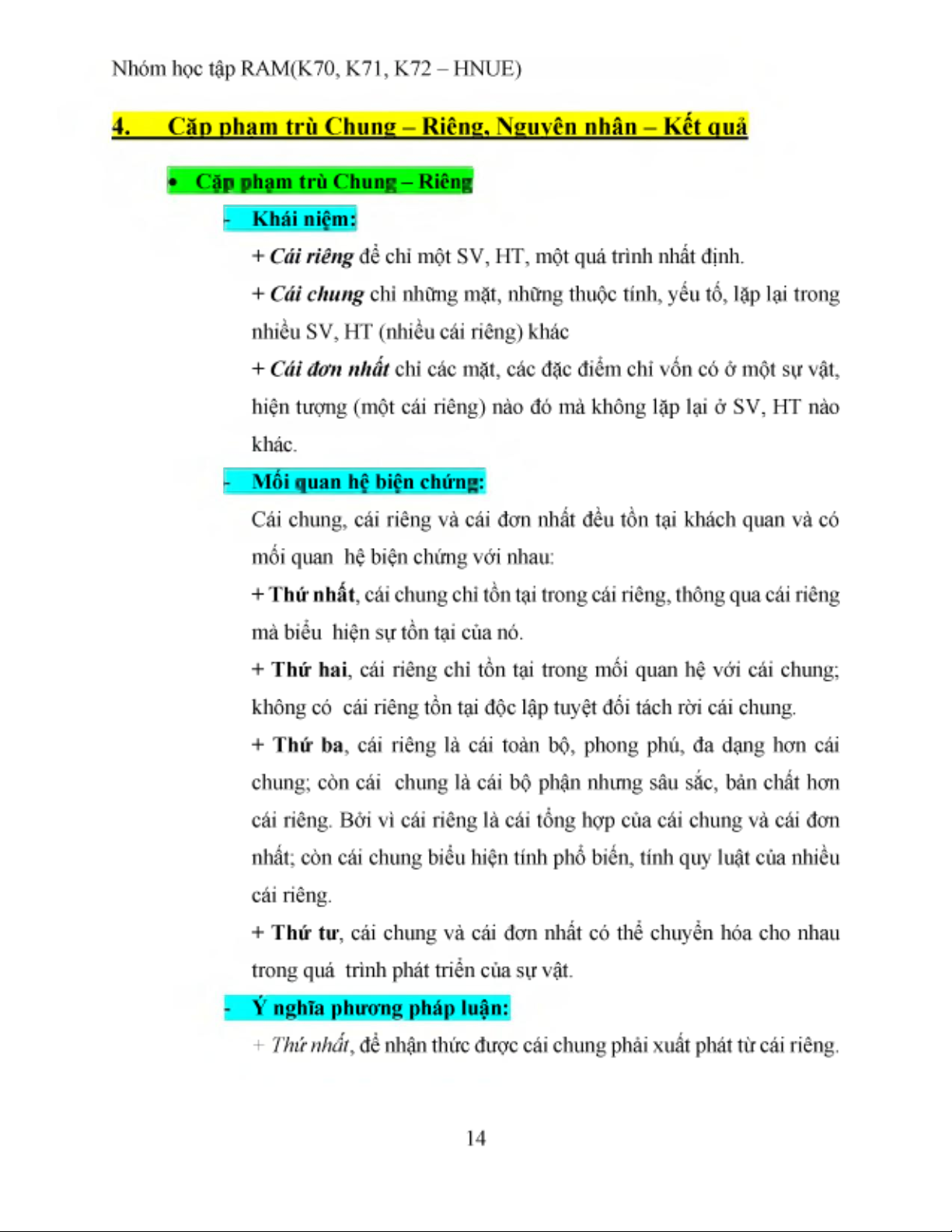 Cặp phạm trù Chung - Riêng, Nguyên nhân - Kết quả . 5