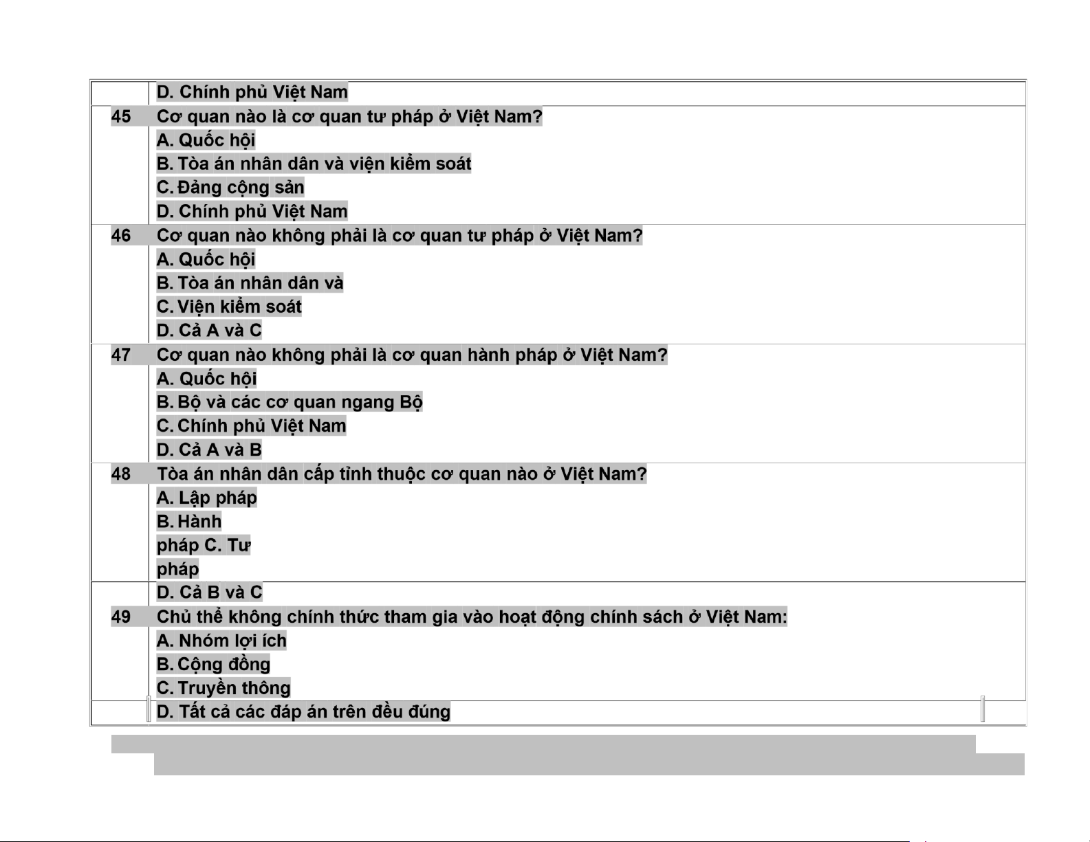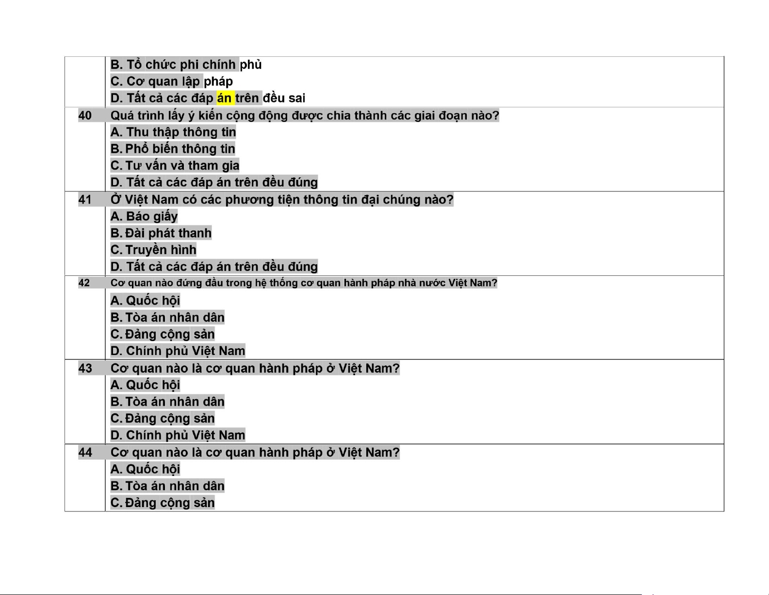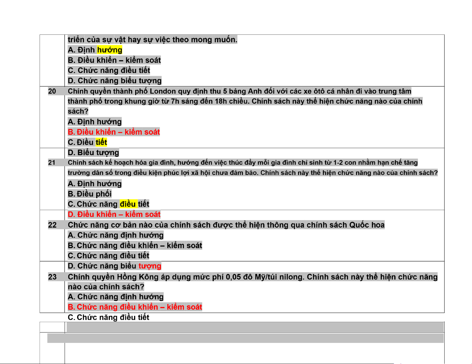 ĐÁP ÁN TRẮC NGHIỆM HỌC PHẦN CHÍNH SÁCH CÔNG (tham khảo) STT Nội dung 1