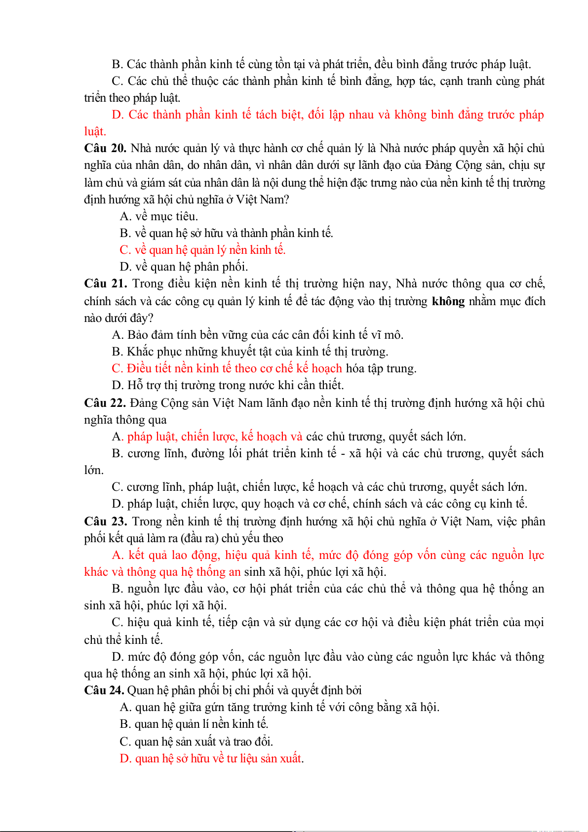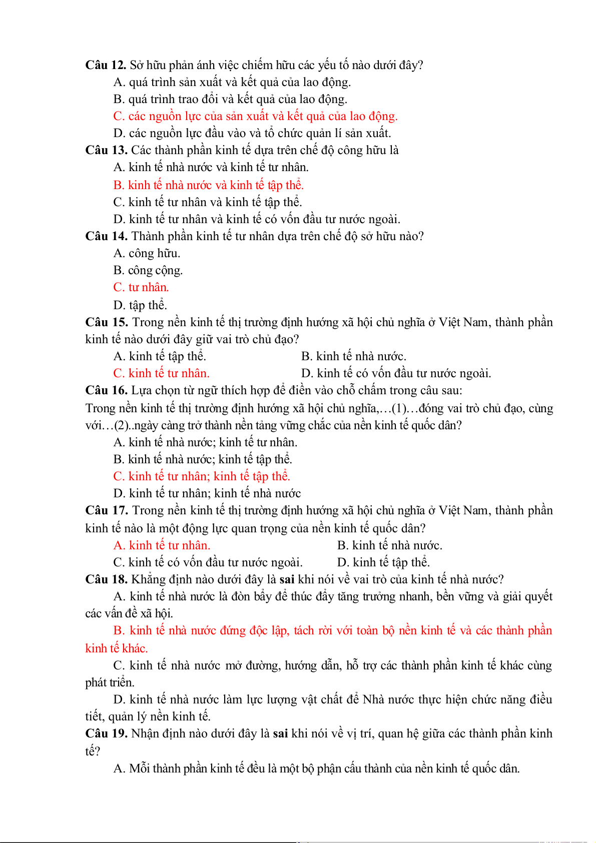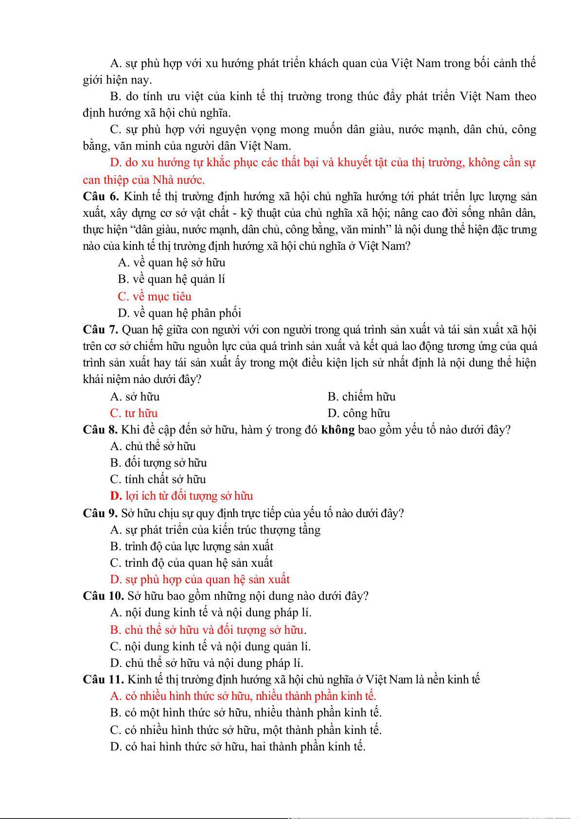 Câu 11. Kinh tế thị trường định hướng xã hội chủ nghĩa ở Việt Nam là nền kinh tế