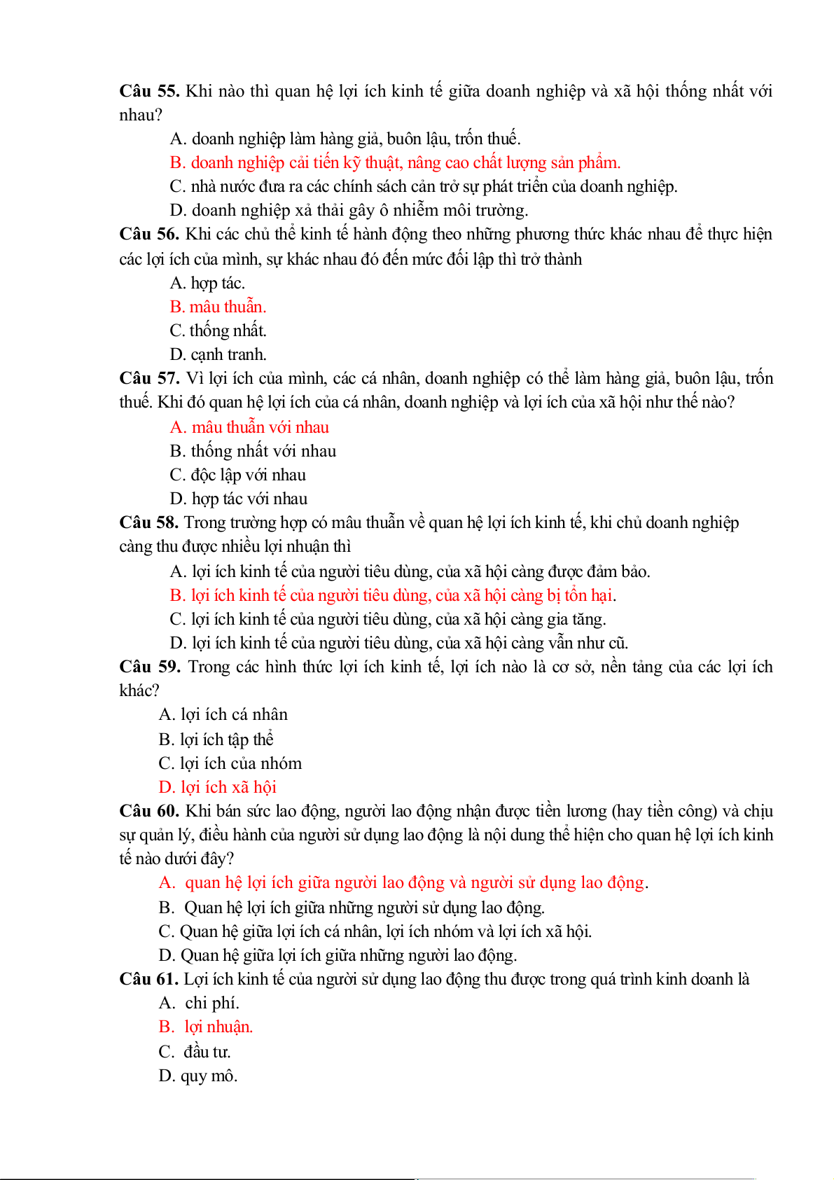 Câu 55. Khi nào thì quan hệ lợi ích kinh tế giữa doanh nghiệp và xã hội thống nhất với nhau?