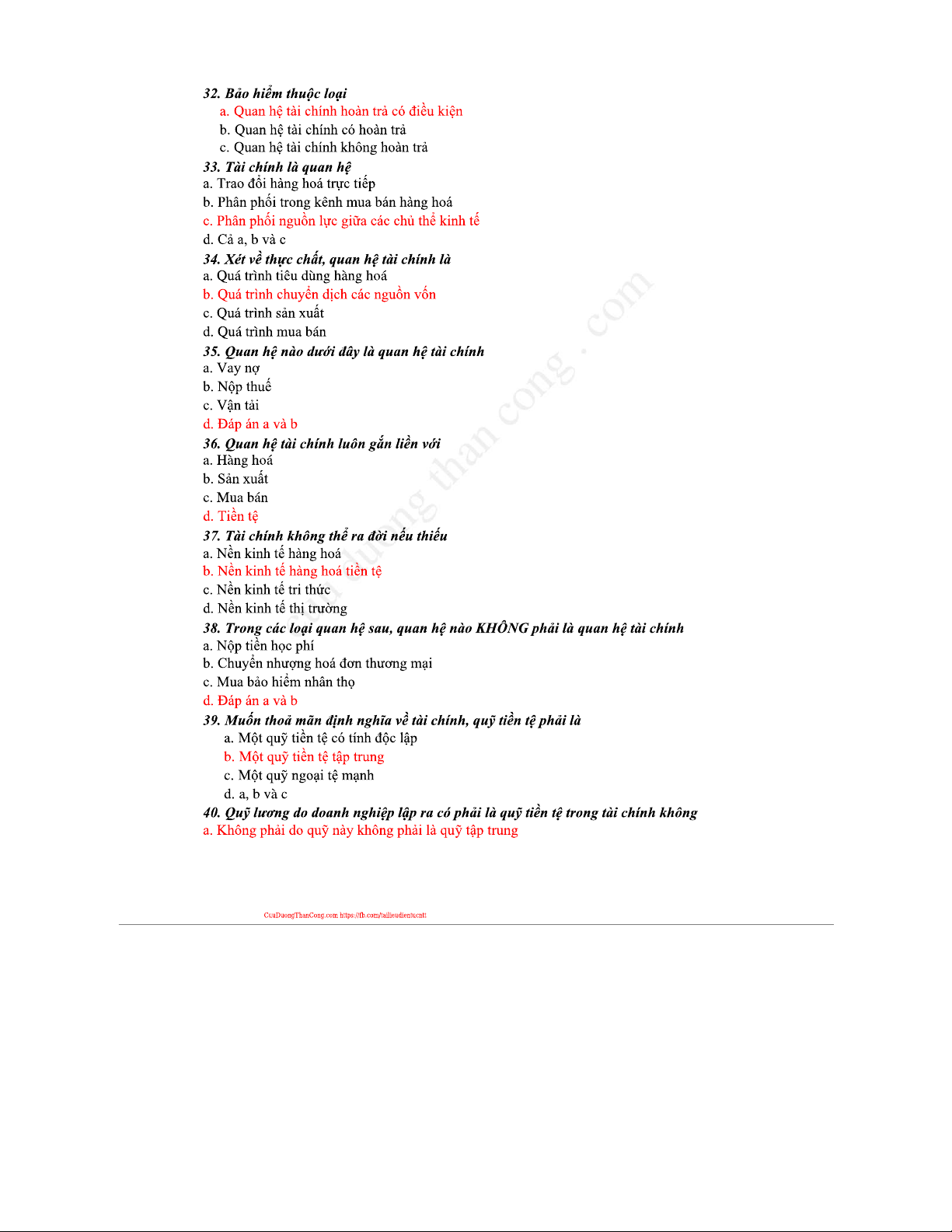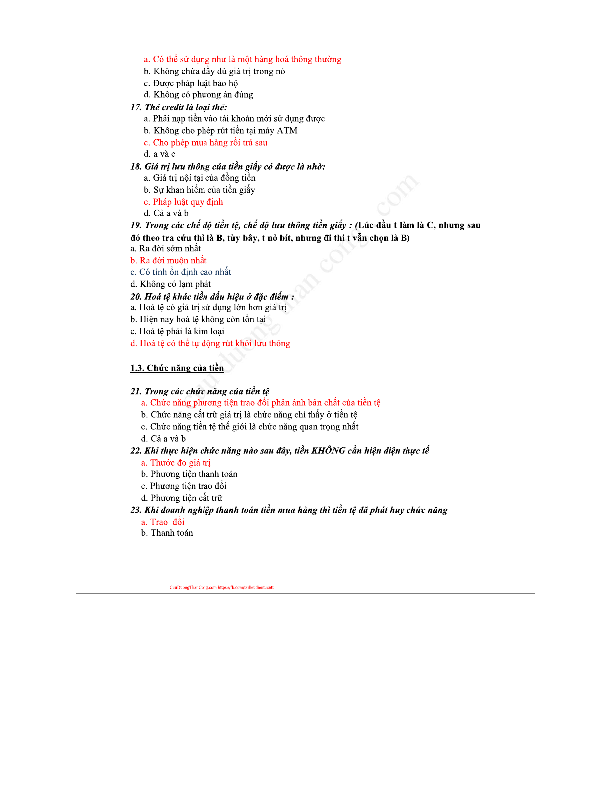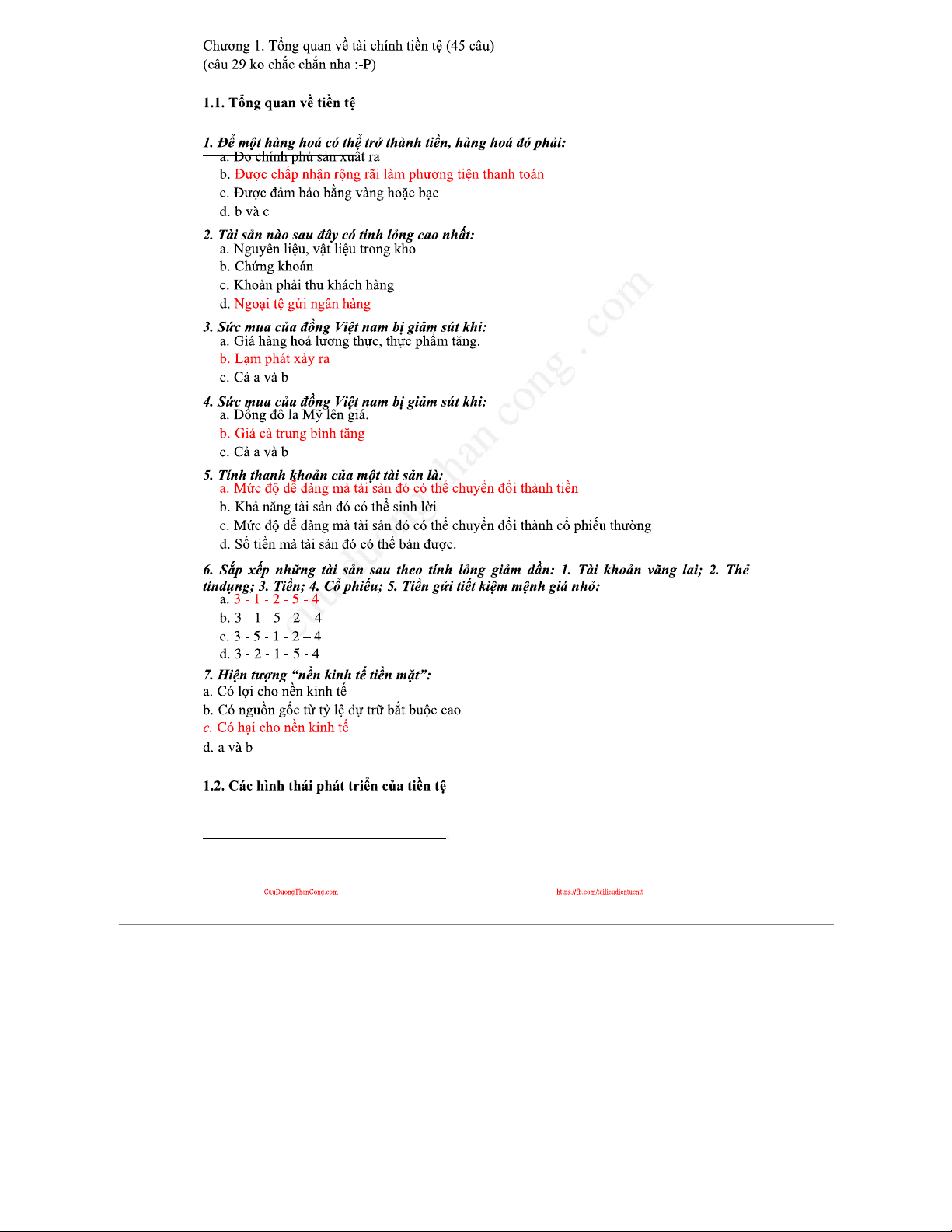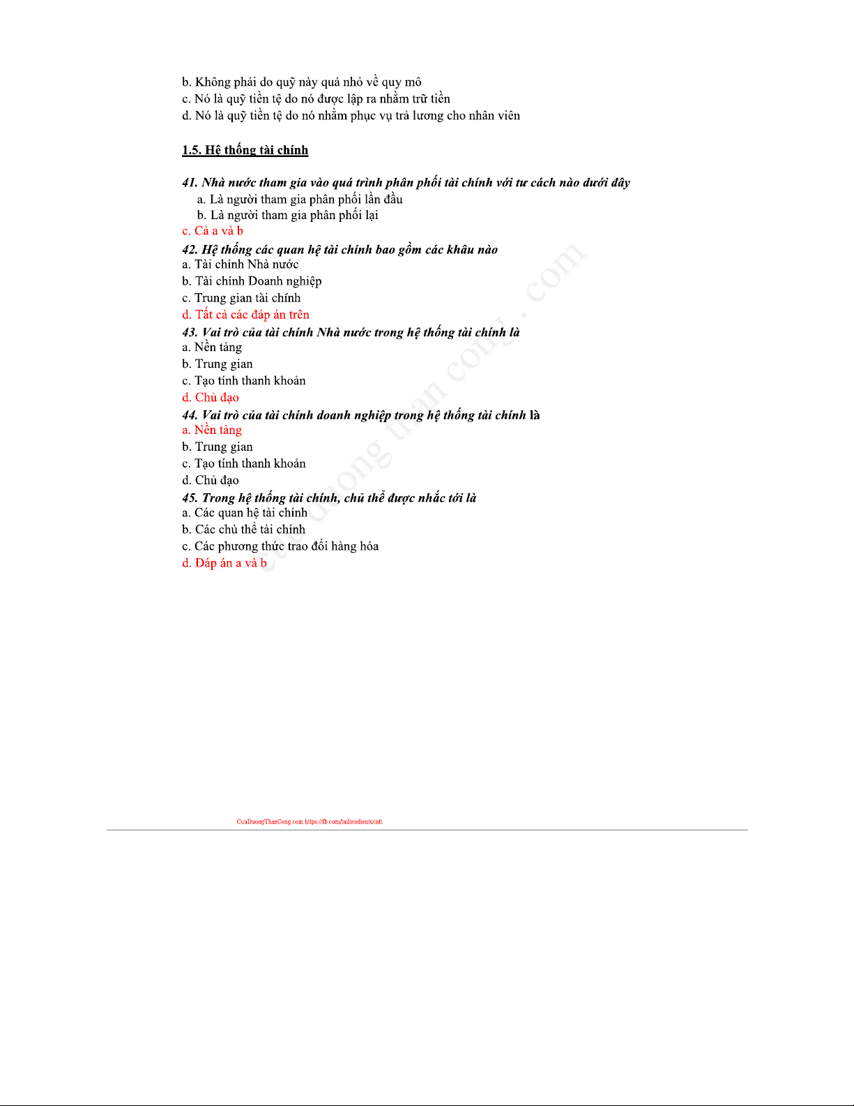 Đáp án trắc nghiệm Lý thuyết tài chính tiền tệ - Chương 1 (45 câu)