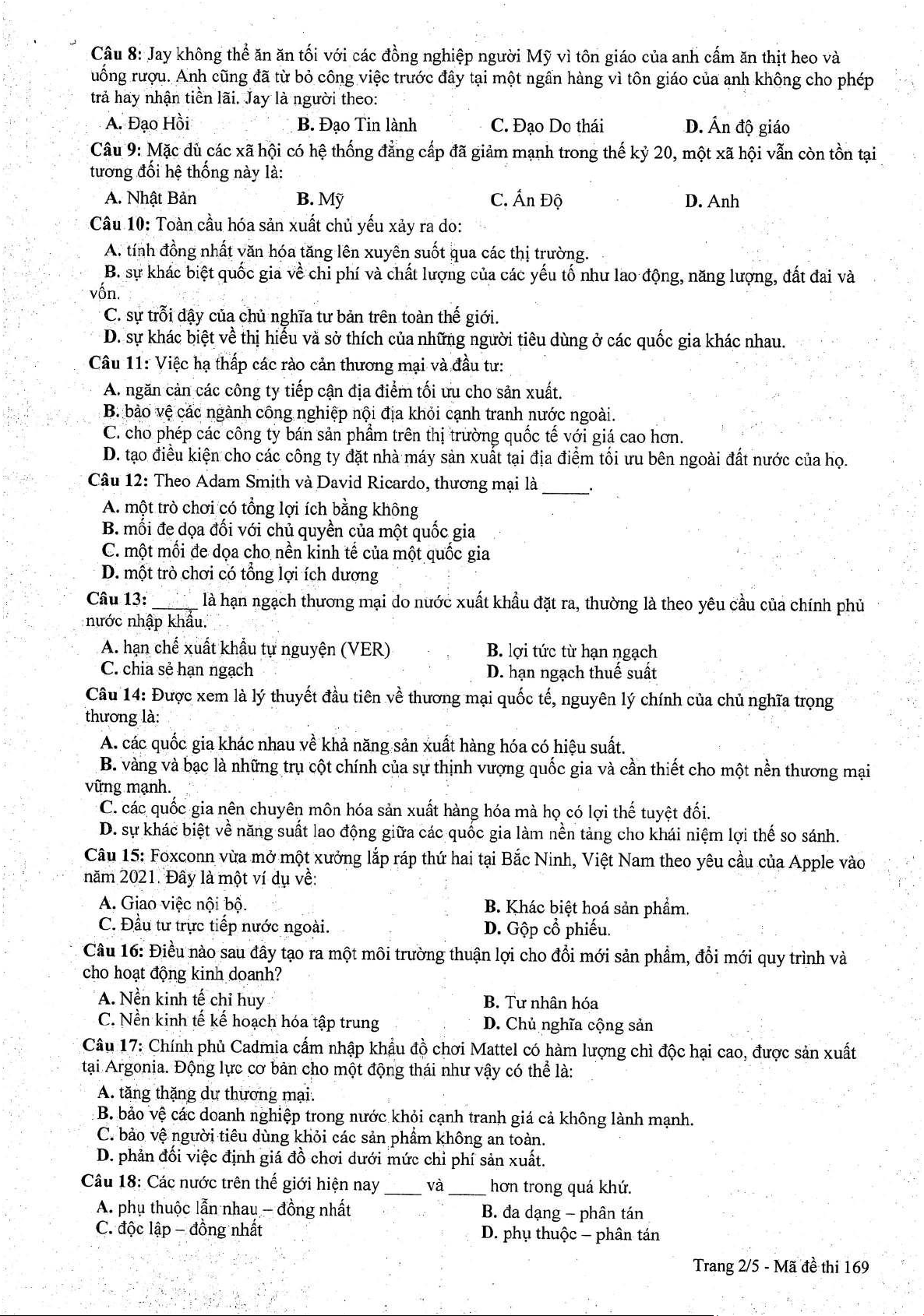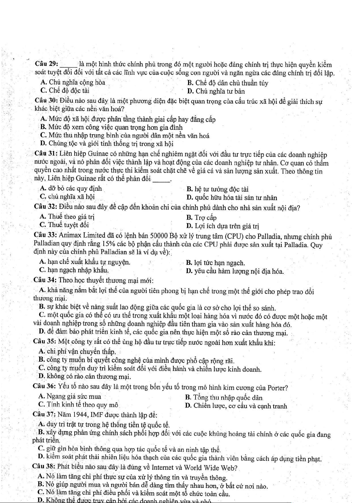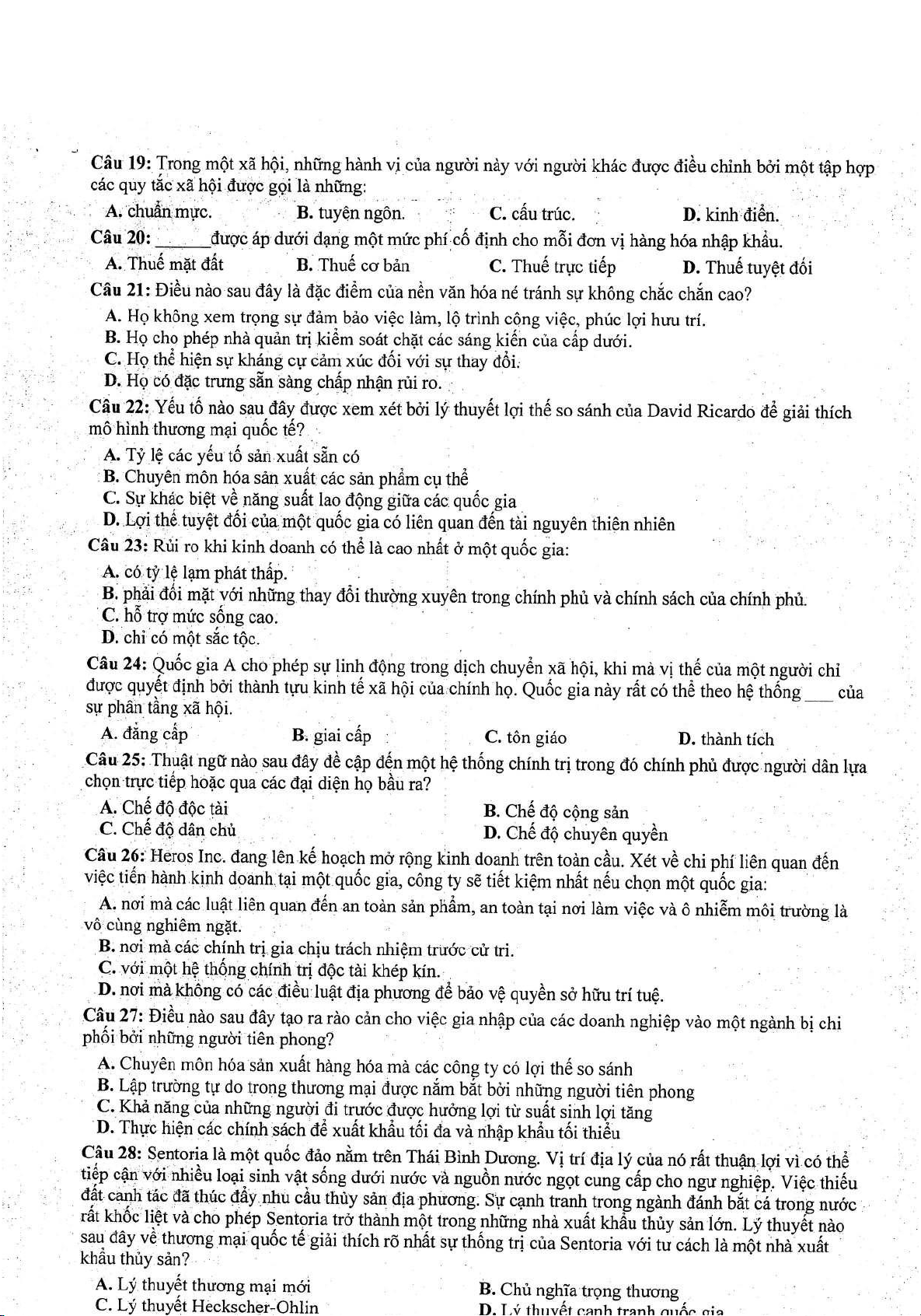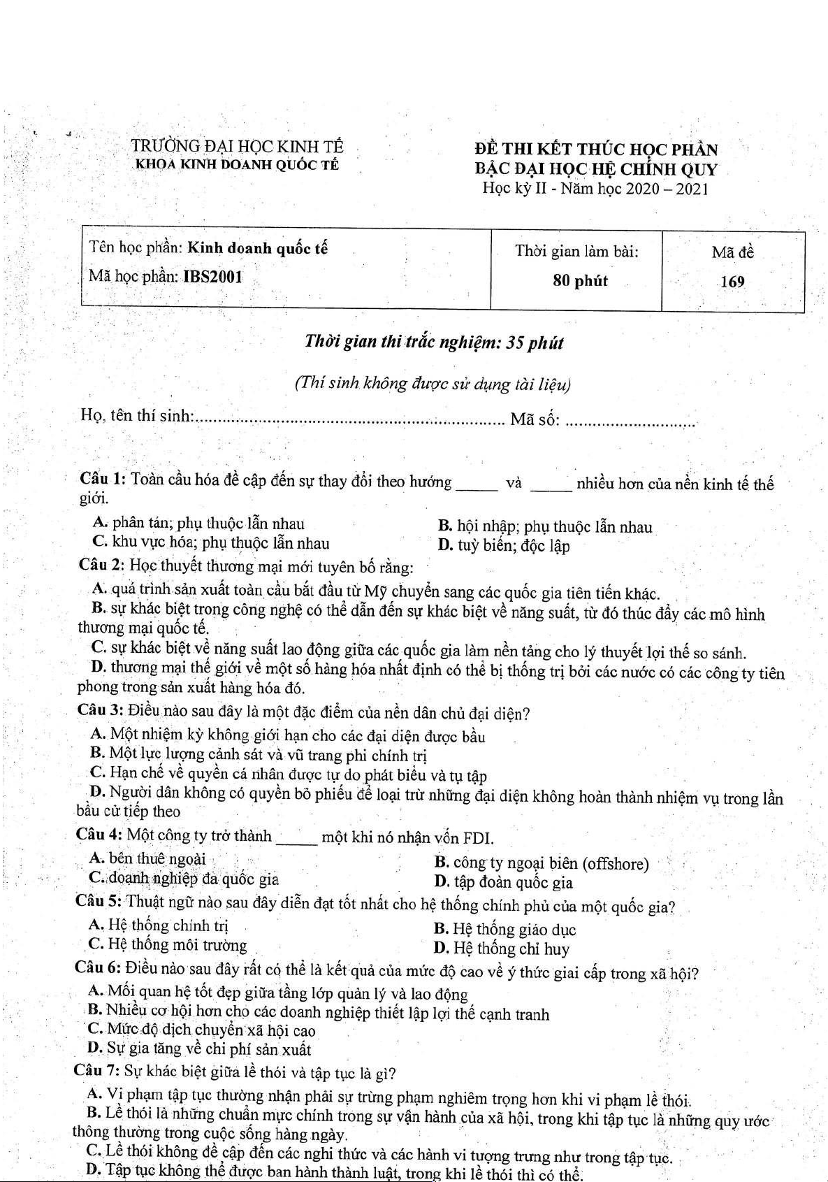 Đáp án Trắc Nghiệm Môn Kinh doanh quốc tế | Trường Đại học Kinh tế, Đại học Huế