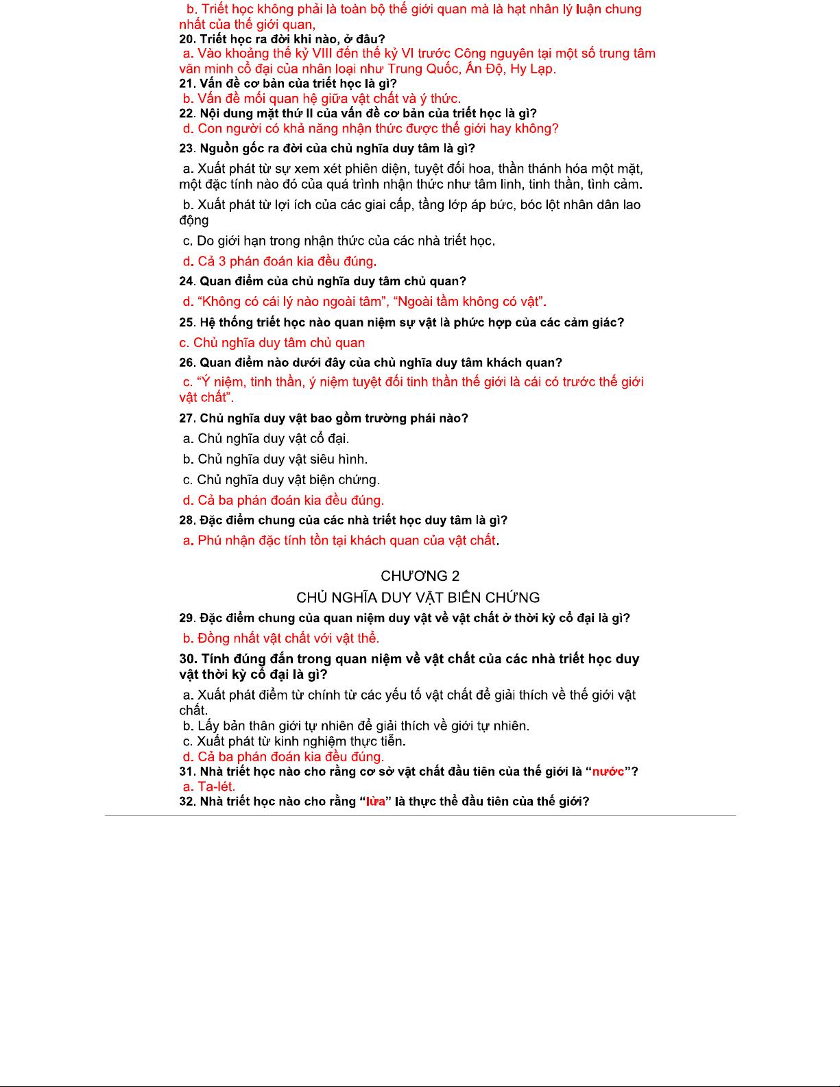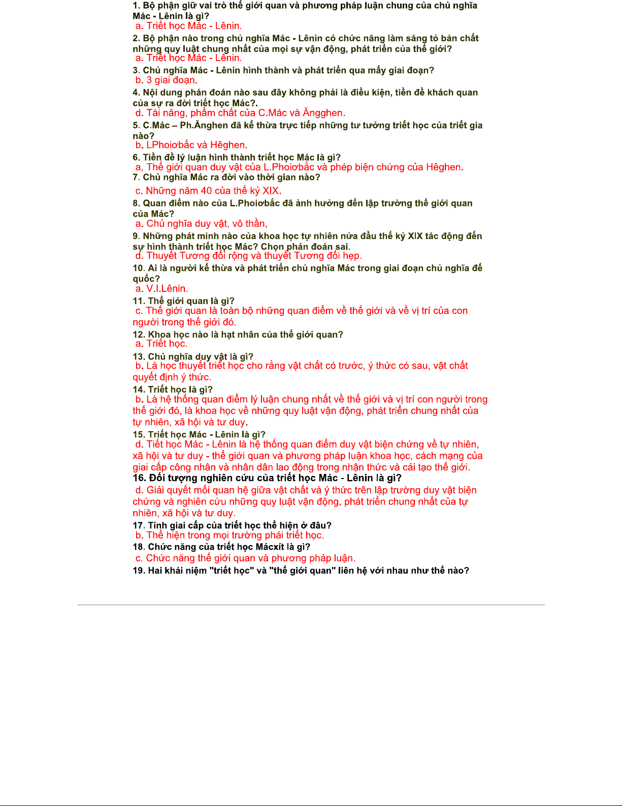 ĐÁP ÁN TRIẾT HỌC - Triết Học 1: Phân Tích Các Khái Niệm Cơ Bản