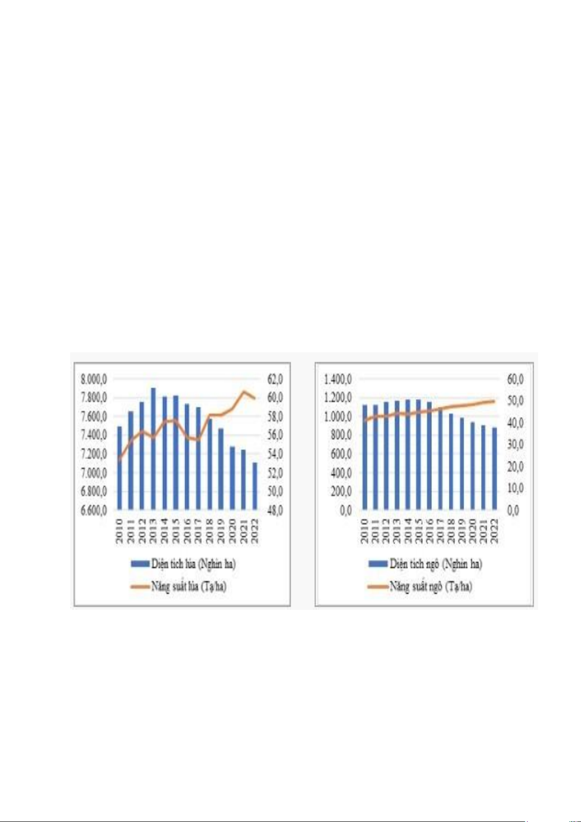 53,4 tạ/ha vào năm 2010 lên 60 tạ/ha vào năm 2022 (tăng 6,6 tạ/ha); diện tích ngô cũng giảm
