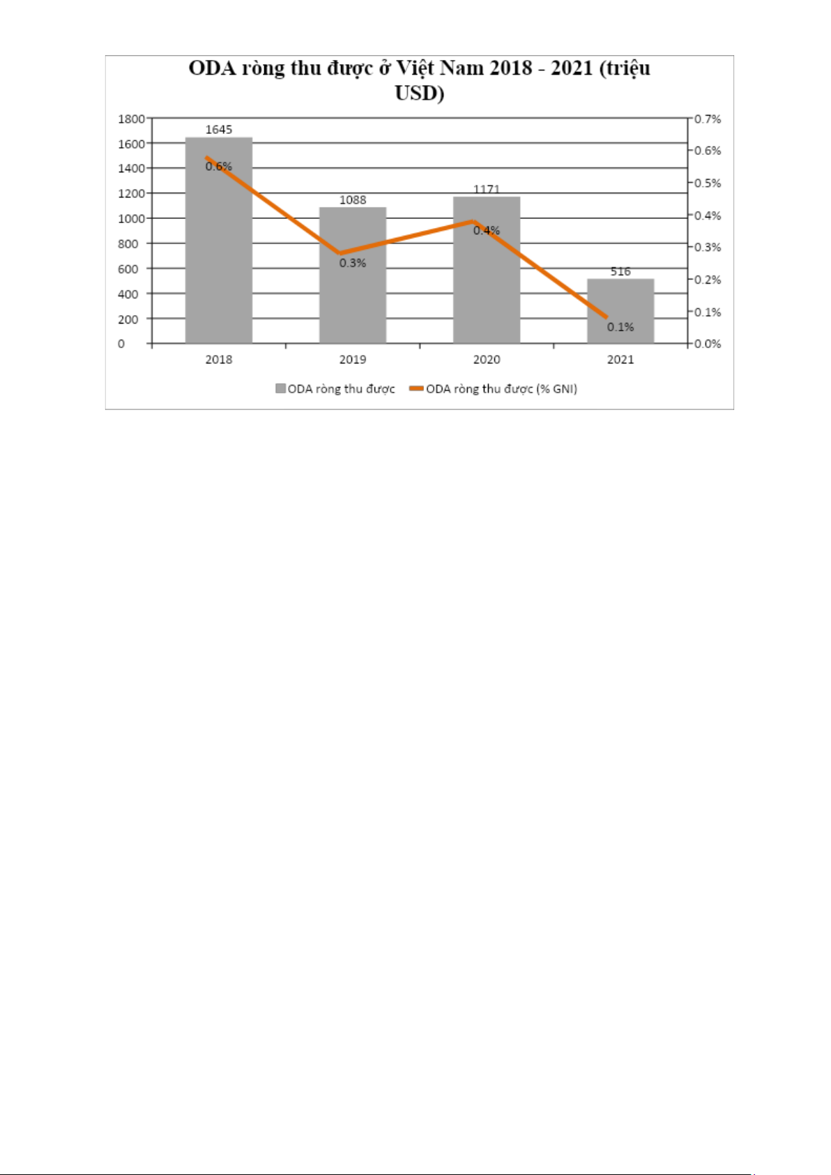 Tổng ODA ròng cho Việt Nam có xu hướng giảm trong giai oạn 2018 – 2021. Mặc dù