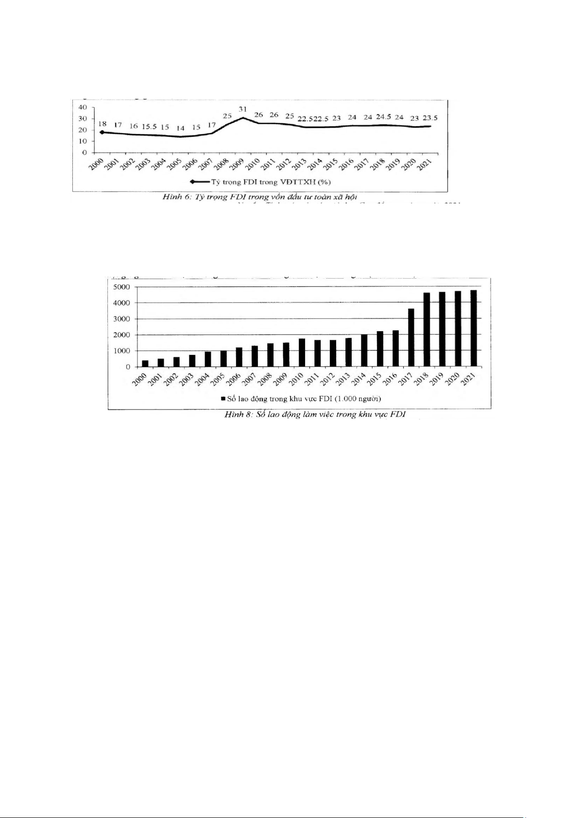 + Tỷ trọng vốn FDI trong vốn đầu tư toàn xã hội duy trì ở 21.4% (2000-2021) lOMoAR cPSD| 61260386 17 +