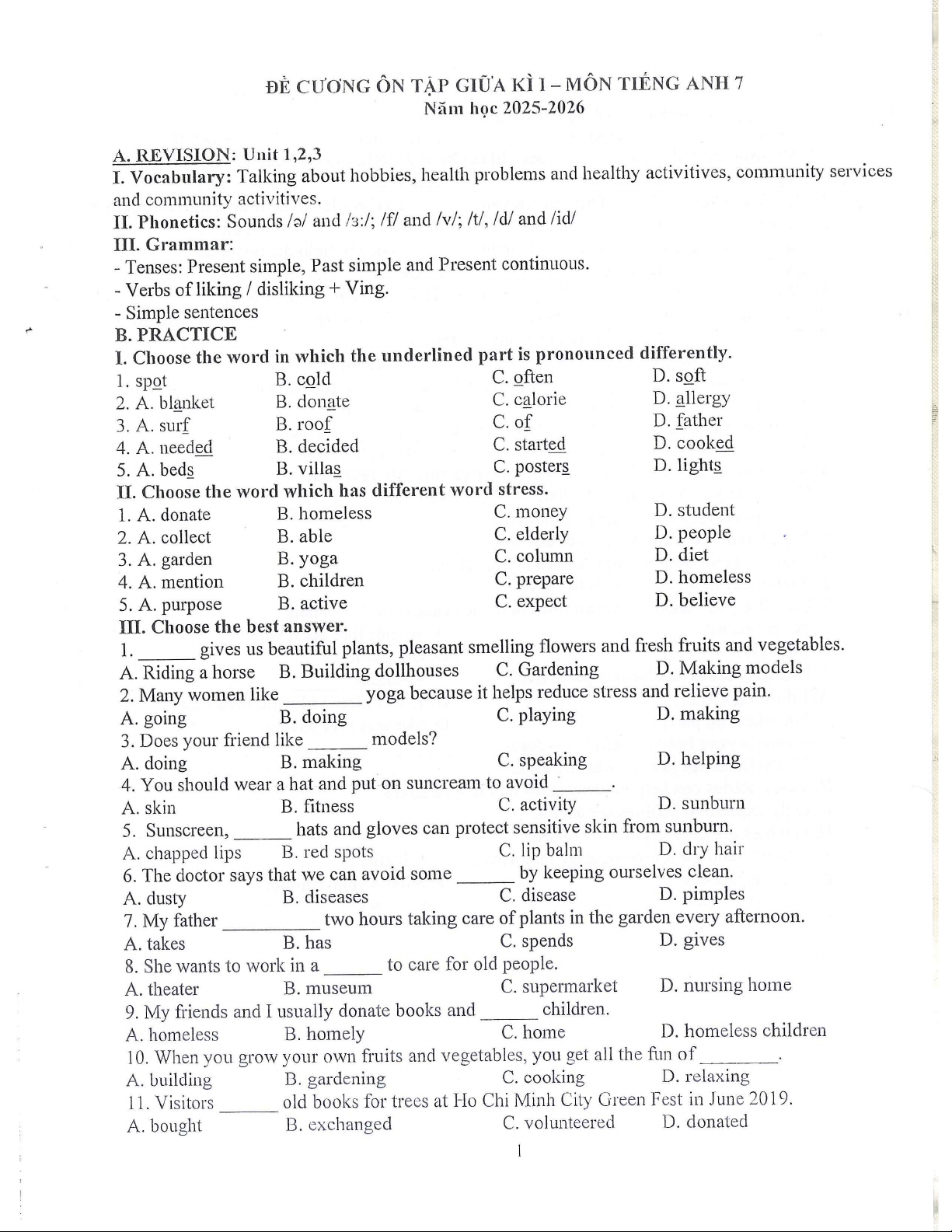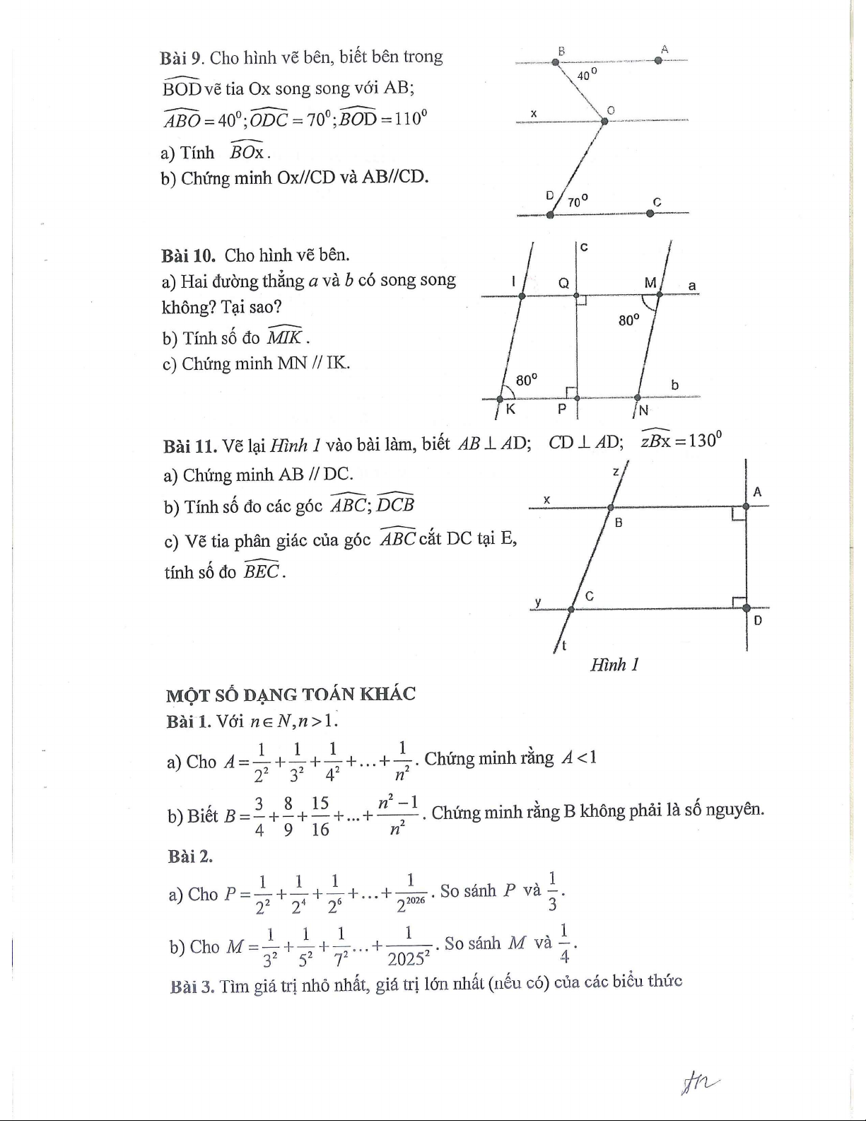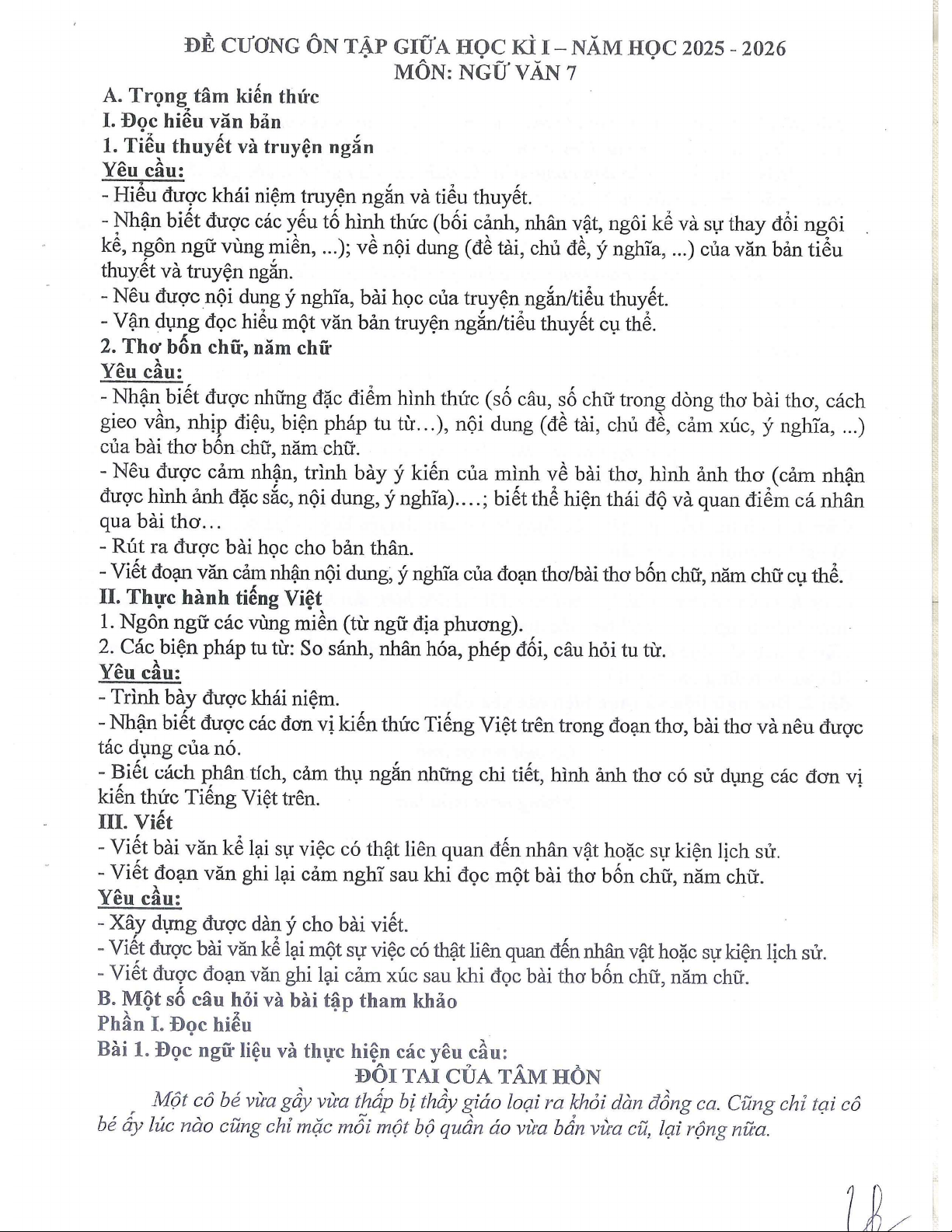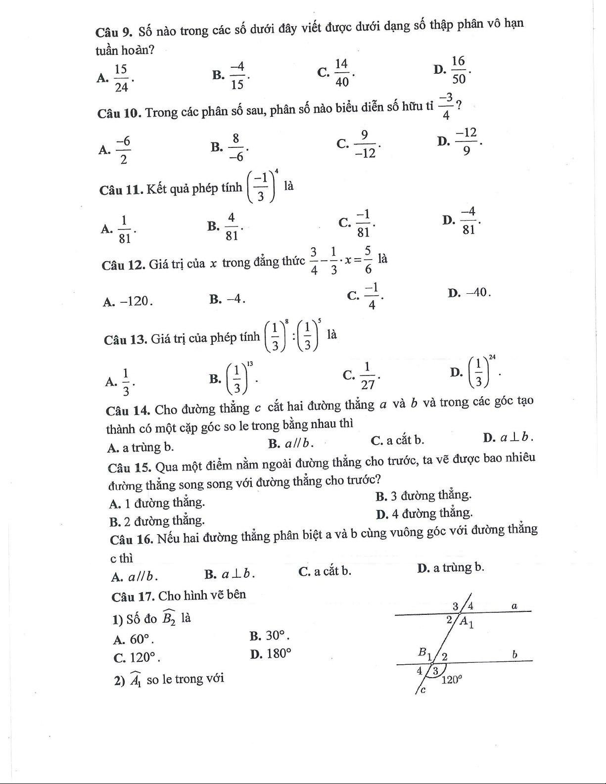 Đề cương giữa kì 1 môn Toán lớp 7