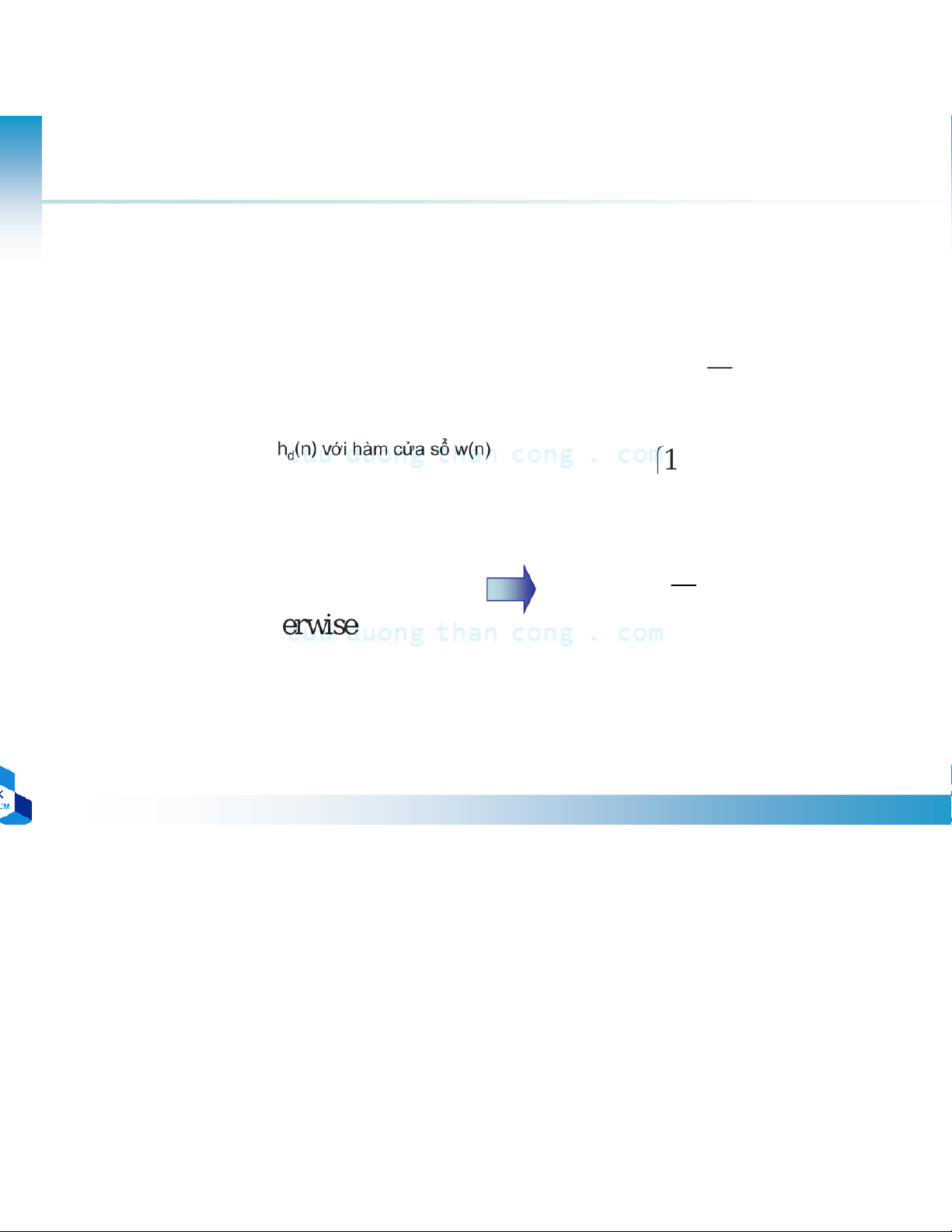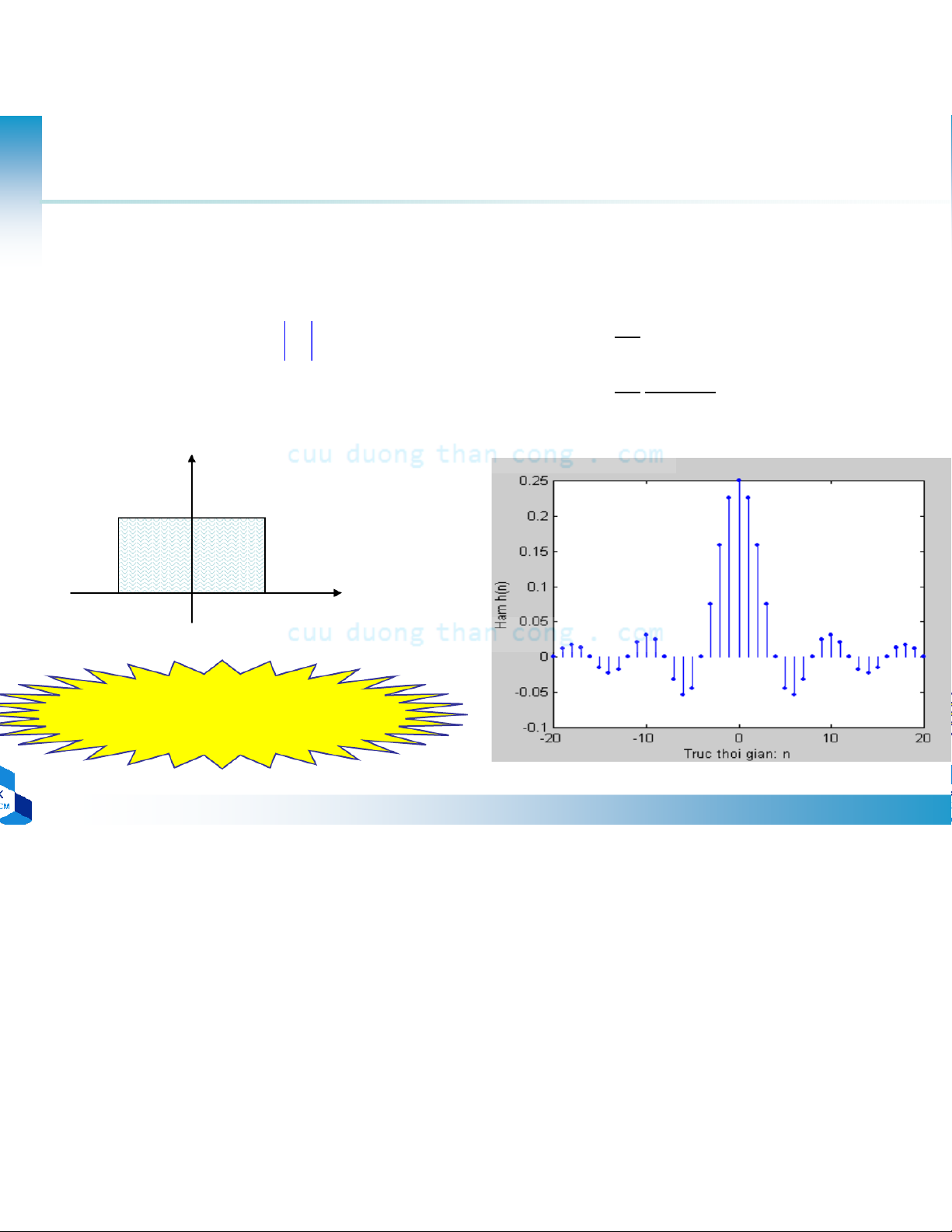 •Để chiều dài hd(n) hữu hạn, cắt hd(n) tại điểm n = M-1 –Nhân = − – C n ,1 , 0 . .,M 1 ửa sổ hình chữ nhật w(n0) • = otherwise