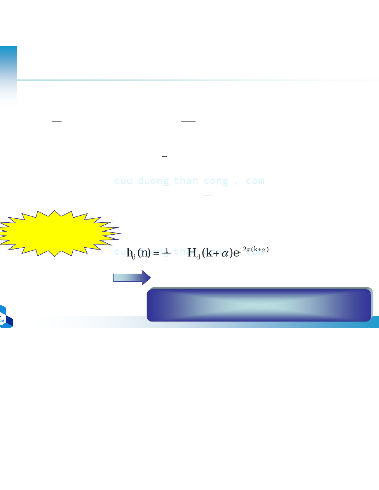 – hd(n): hàm đáp ứng xung đơn vị mong muốn ( 2)1 hj n n( =) H ω ωe ω d d ∫ π d