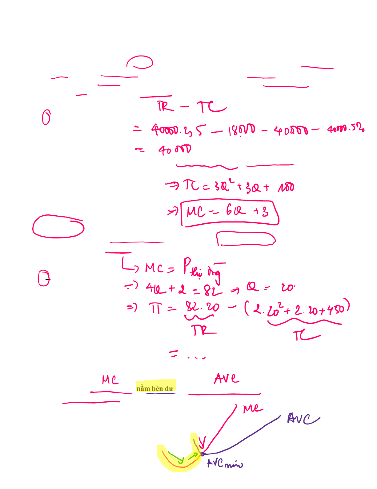 cạnh tranh hoàn hảo có hàm chi phí TC=2Q2+2Q+450. Tại giá thị trường