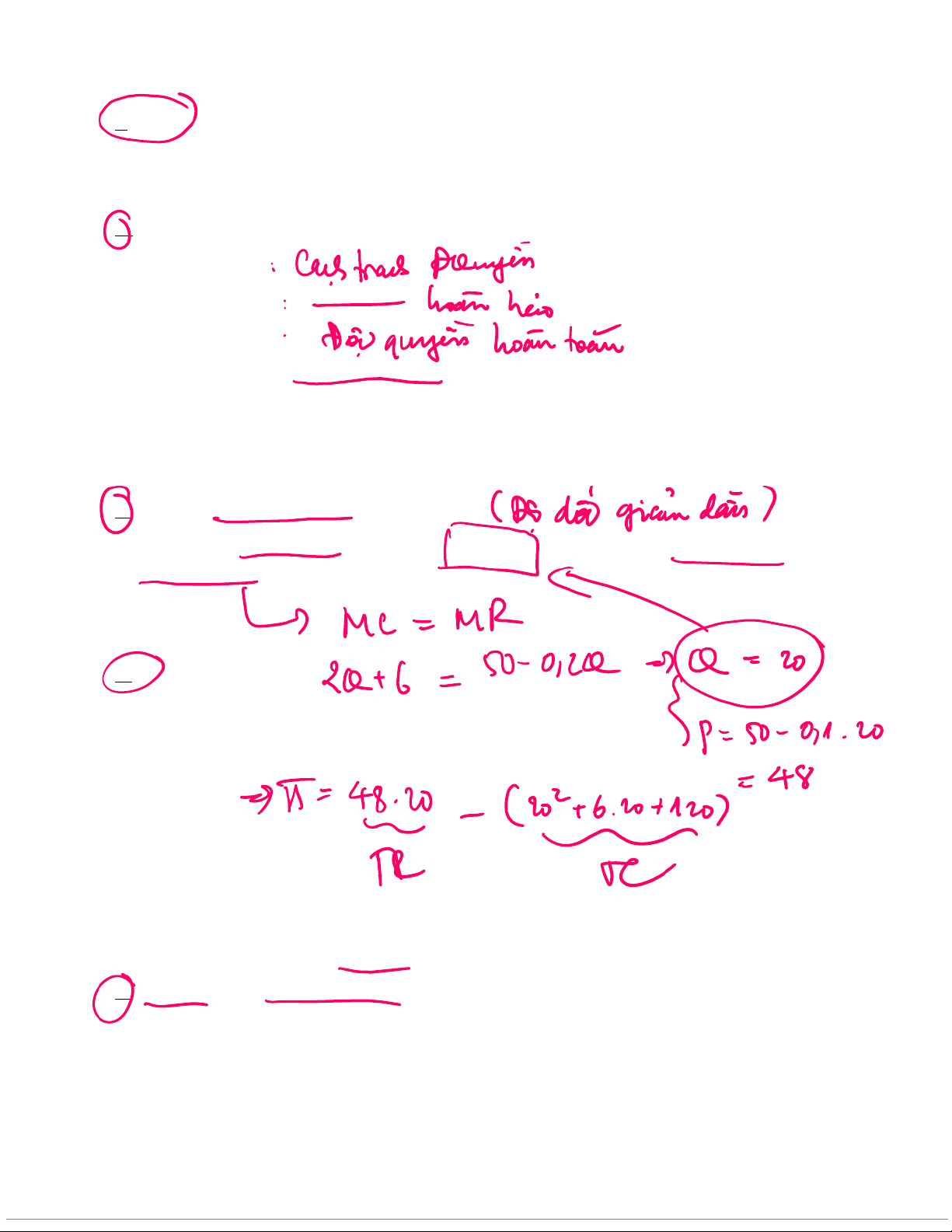 Câu 15: Một hãng độc quyền có hàm cầu P=50-0,1Q và hàm chi phí TC=Q2+6Q+120. Mức