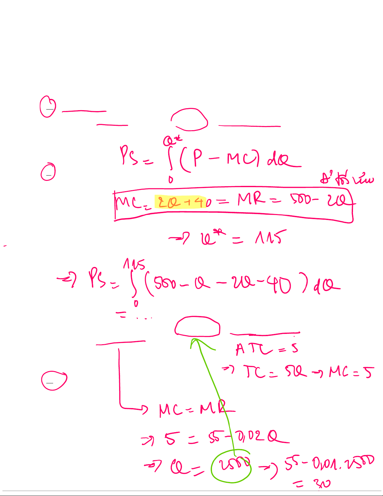 Câu 32: Một hãng độc quyền có hàm cầu P=500-Q và TC=Q2+40Q+1000. Thặng dư sản xuất của hãng là: A. PS = 13225 B. PS = 2207,25 C. PS = 26450 D. PS = 6612,5 Câu 33: Một nhà đ c