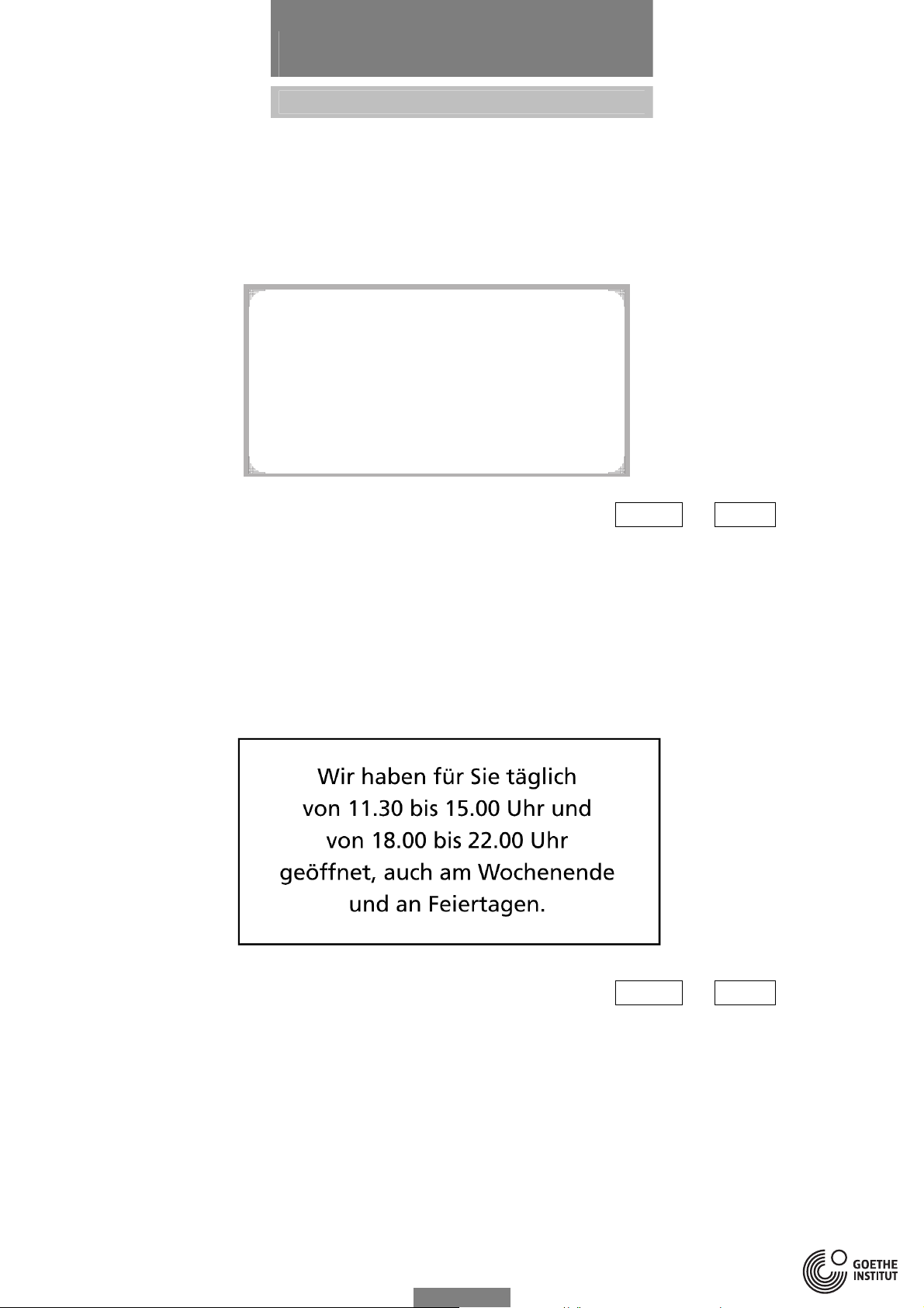 11 Wann soll Frau Krause anrufen? a Vor 13 Uhr. b Zwischen 13 und 18 Uhr. c Zwischen 18 und 19 Uhr.