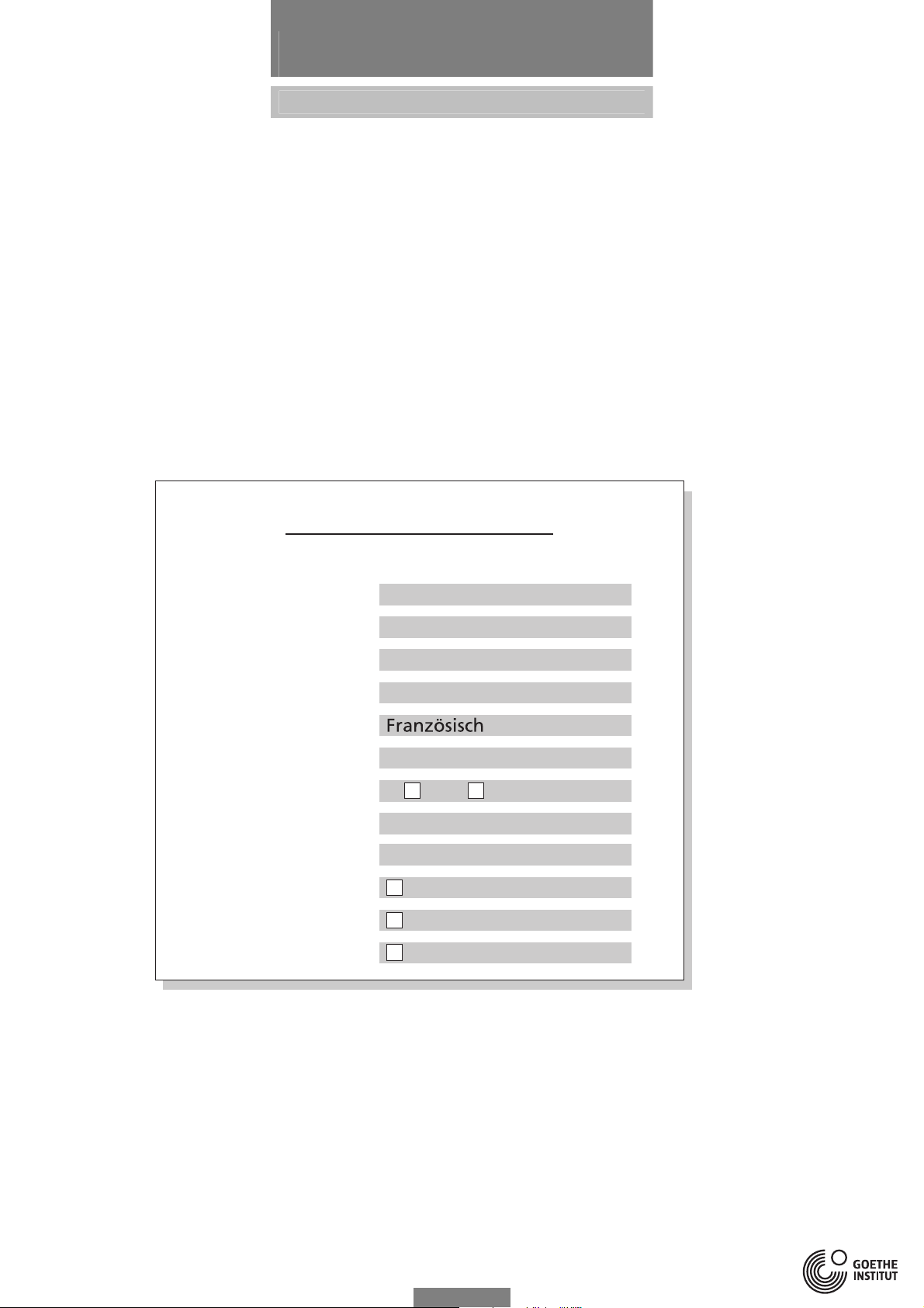 Formular. Am Ende schreiben Sie Ihre Lösungen bitte auf den Antwortbogen. Sprachenschule LIGA Anmeldung Familienname: Legrand (0) Vorname: Yvonne Geburtsdatum: 17.4.1993 Geburtsort: (1) Muttersprache: Andere Sprachen: (2) Schon Deutsch gelernt? ja nein x Wie lange? (3) Kurstermin: (4) Kurszeit: von 9 – 12 Uhr (5) von 13 – 16 Uhr von 17 – 20 Uhr Seite 22 ----------------- Schreiben Kandidatenblätter Teil 2