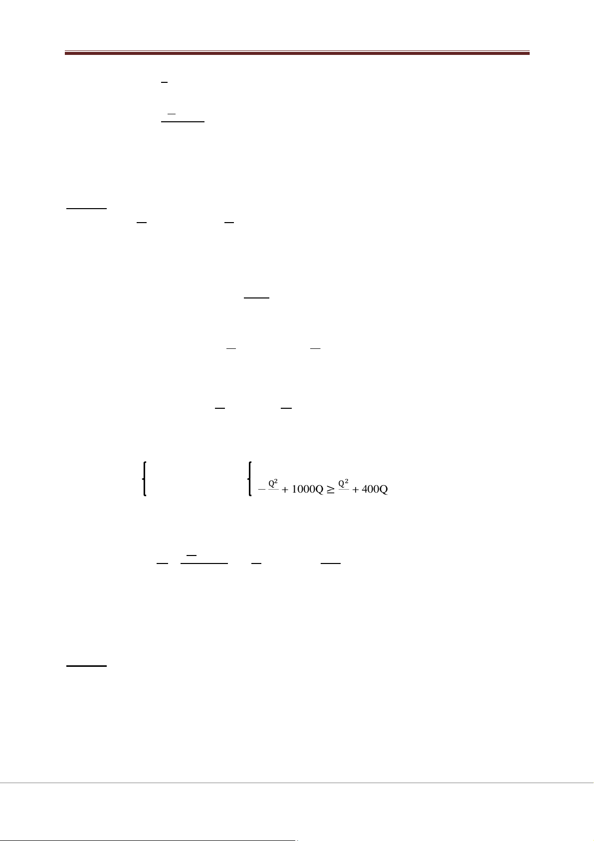Câu 9: Sản lượng lớn nhất mà doanh nghiệp không bị l l ỗ à A. Q = 999,9 B. Q = 2500,5 C. Cả ba câu đều sai D. Q = 1500,5