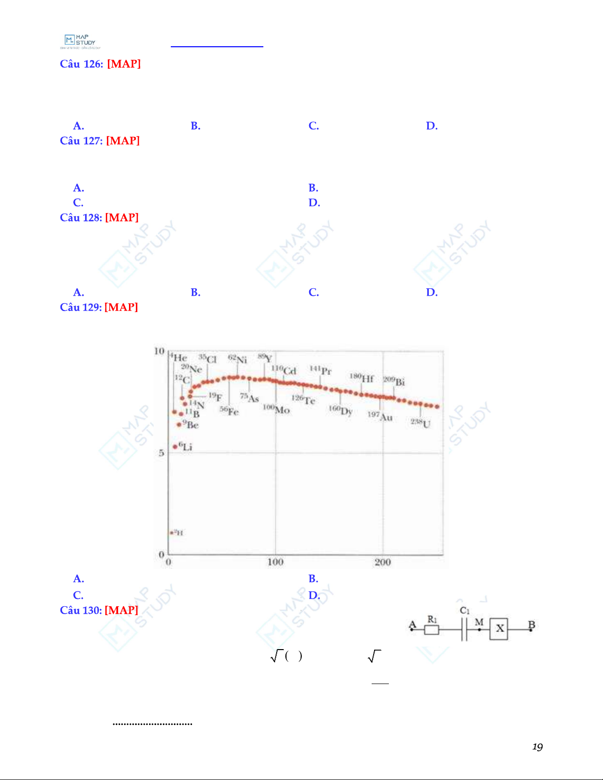 Trên hình là đồ thị biểu diễn sự biến thiên của năng lượng liên kết riêng (trục tung,