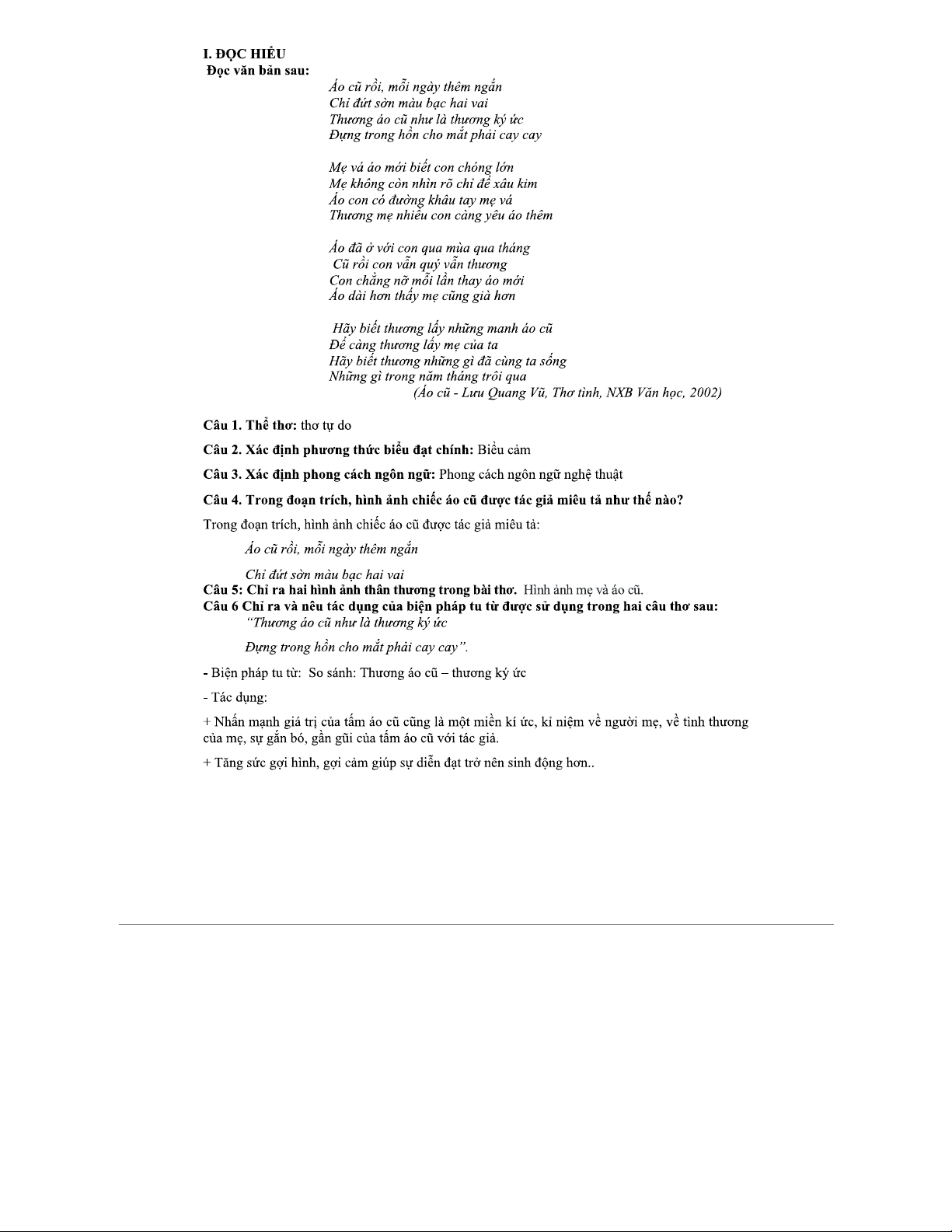 ĐỀ 2 - PHÂN TÍCH THƠ "ÁO CŨ" - TÀI LIỆU HỌC TẬP