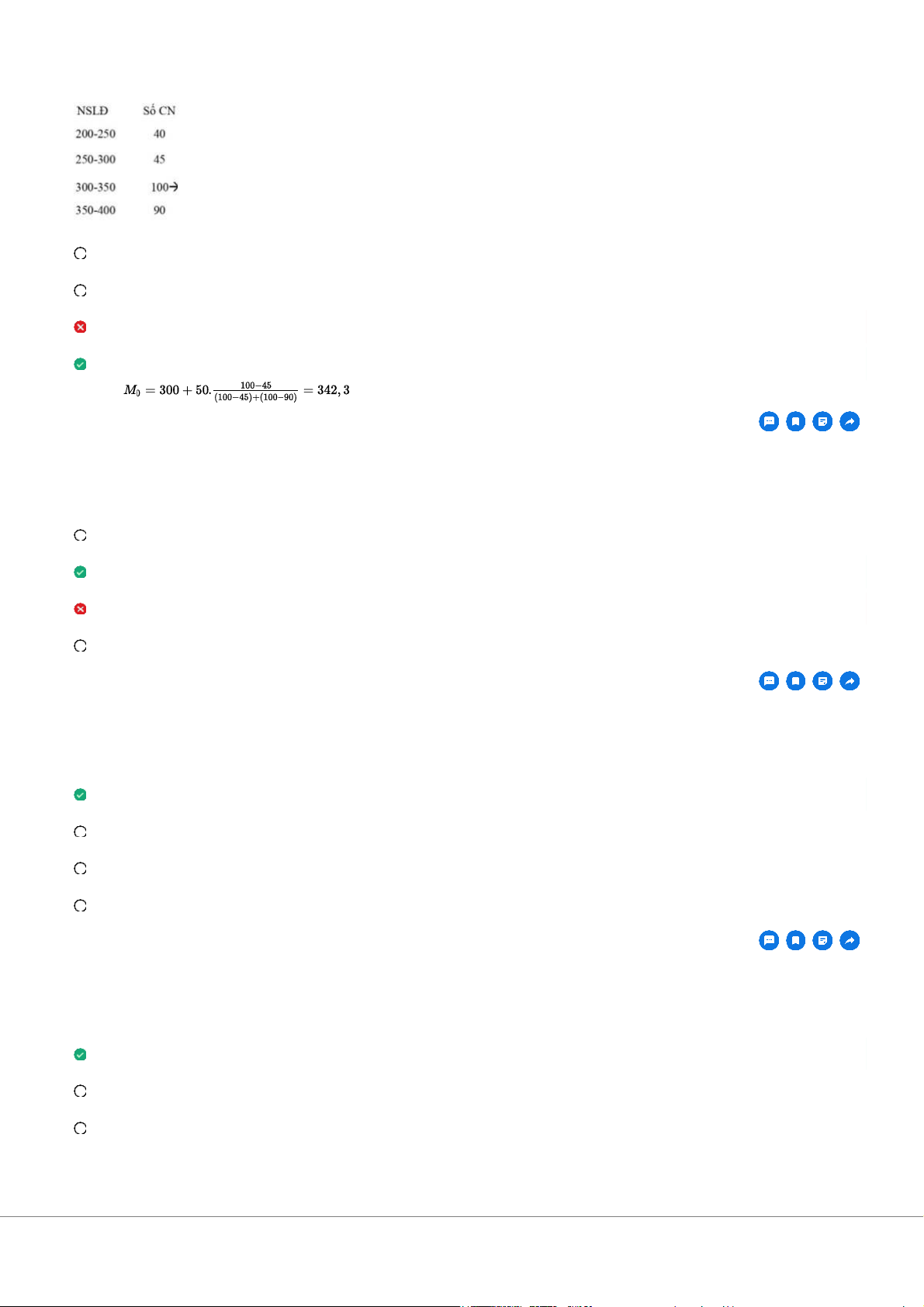 Cho số liệu sau. Tìm mốt của năng suất lao động 243,2 432,3 323,4 342,3 Giải thích: Câu 10 - Lần cu i tr ố ả lời Sai Phương sai là: