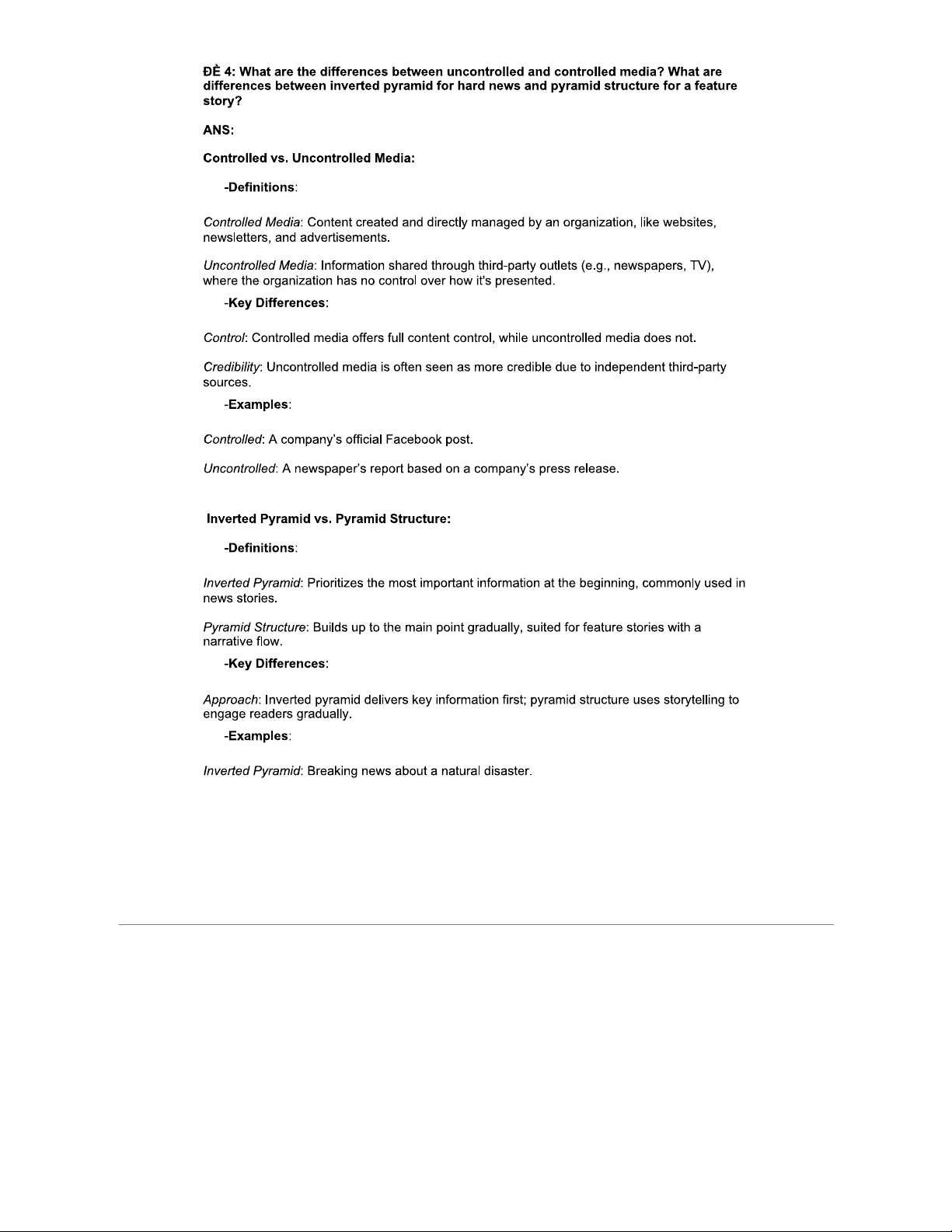 ĐỀ 4: Comparing Controlled and Uncontrolled Media, Structures in Journalism