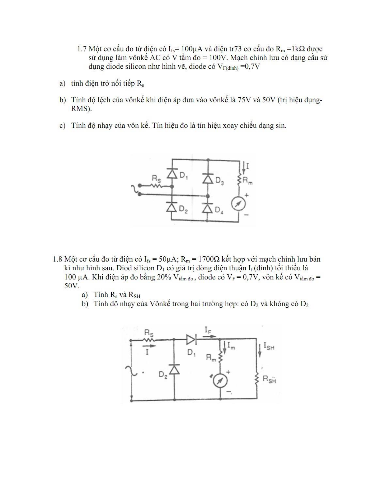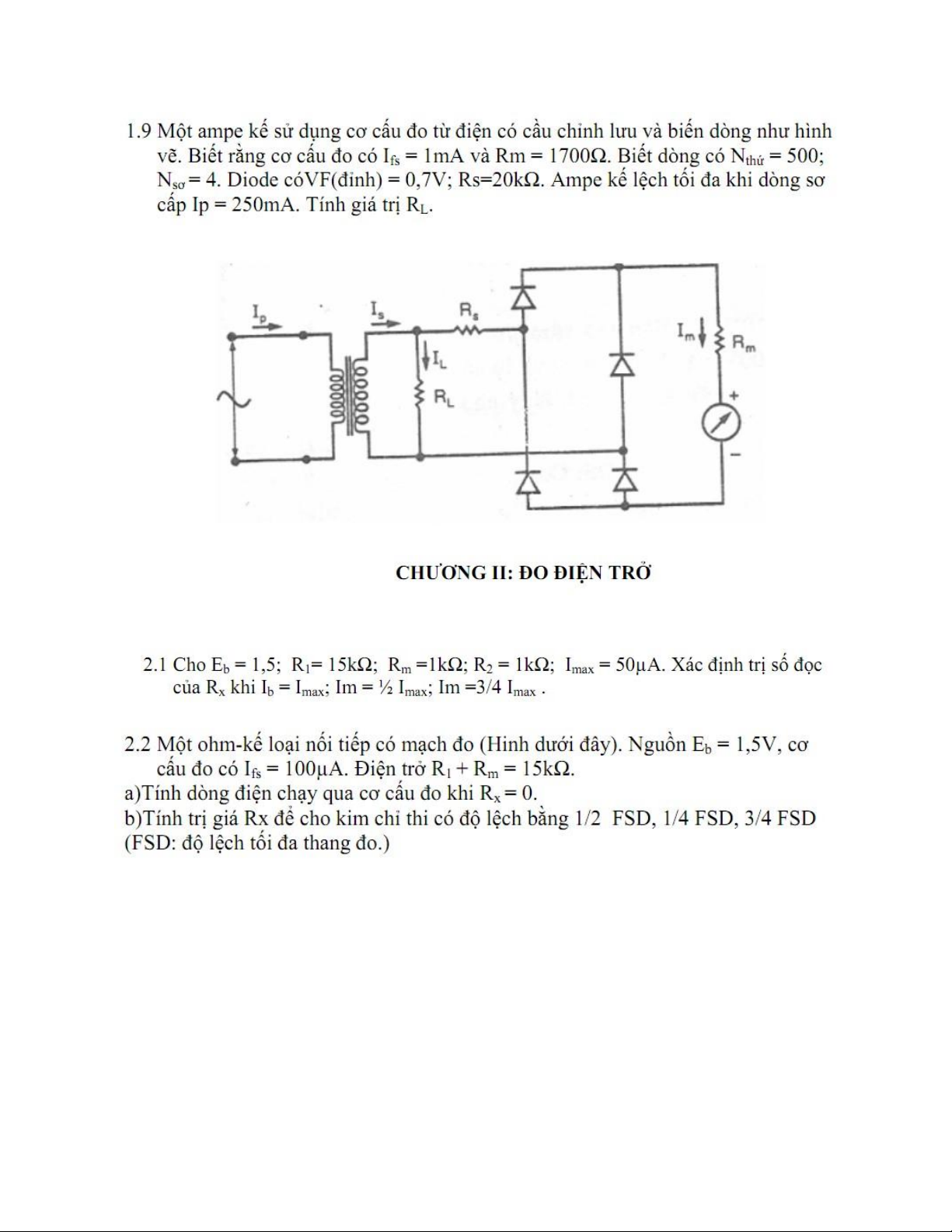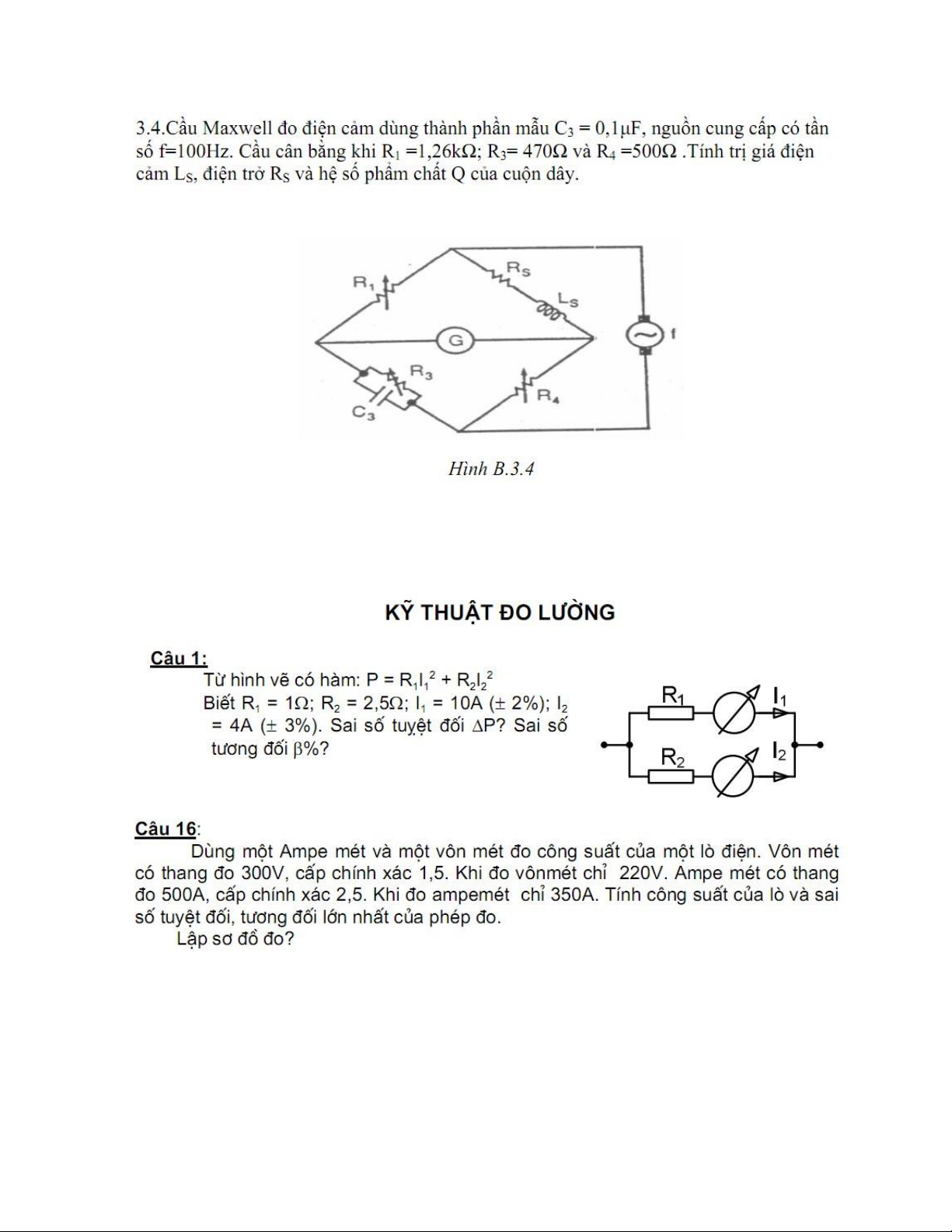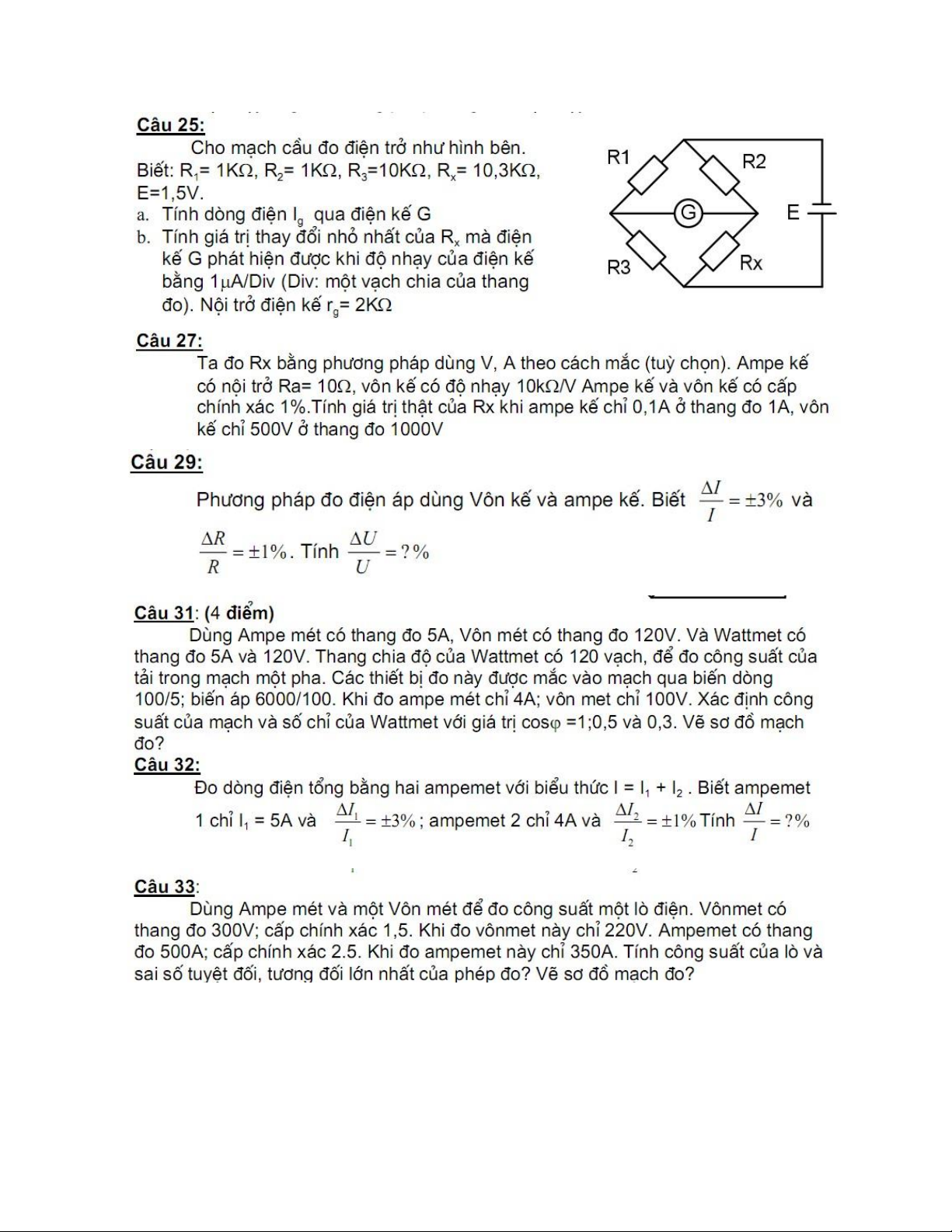 Đề bài tập kĩ thuật đo lường điện 4- Sai số và Công suất