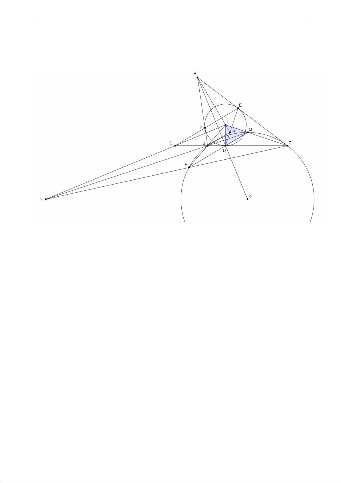 ∠IGD + ∠IQD = 180◦ ⇐⇒ ∠IBD = ∠IQD ⇐⇒ ∠P BC = ∠P QC.