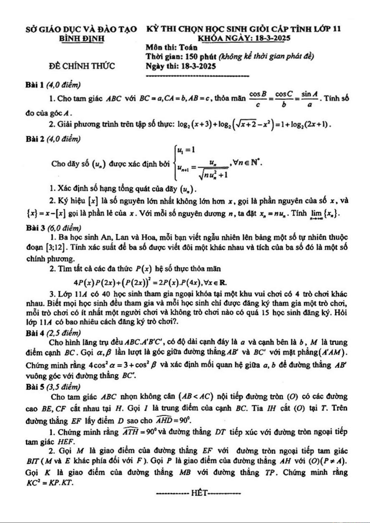 Giới thiệu đến quý thầy, cô giáo và các em học sinh lớp 11 đề thi chọn học sinh giỏi cấp tỉnh môn Toán 11 năm học 2024 – 2025 sở Giáo dục và Đào tạo tỉnh Bình Định. Kỳ thi được diễn ra vào ngày 18 tháng 03 năm 2025.