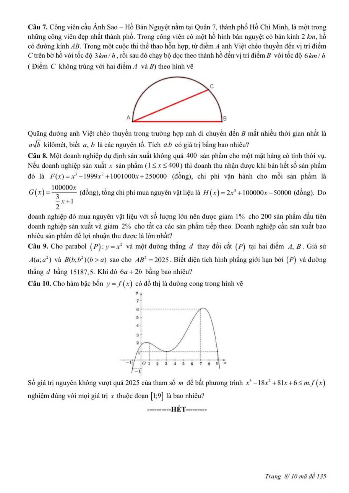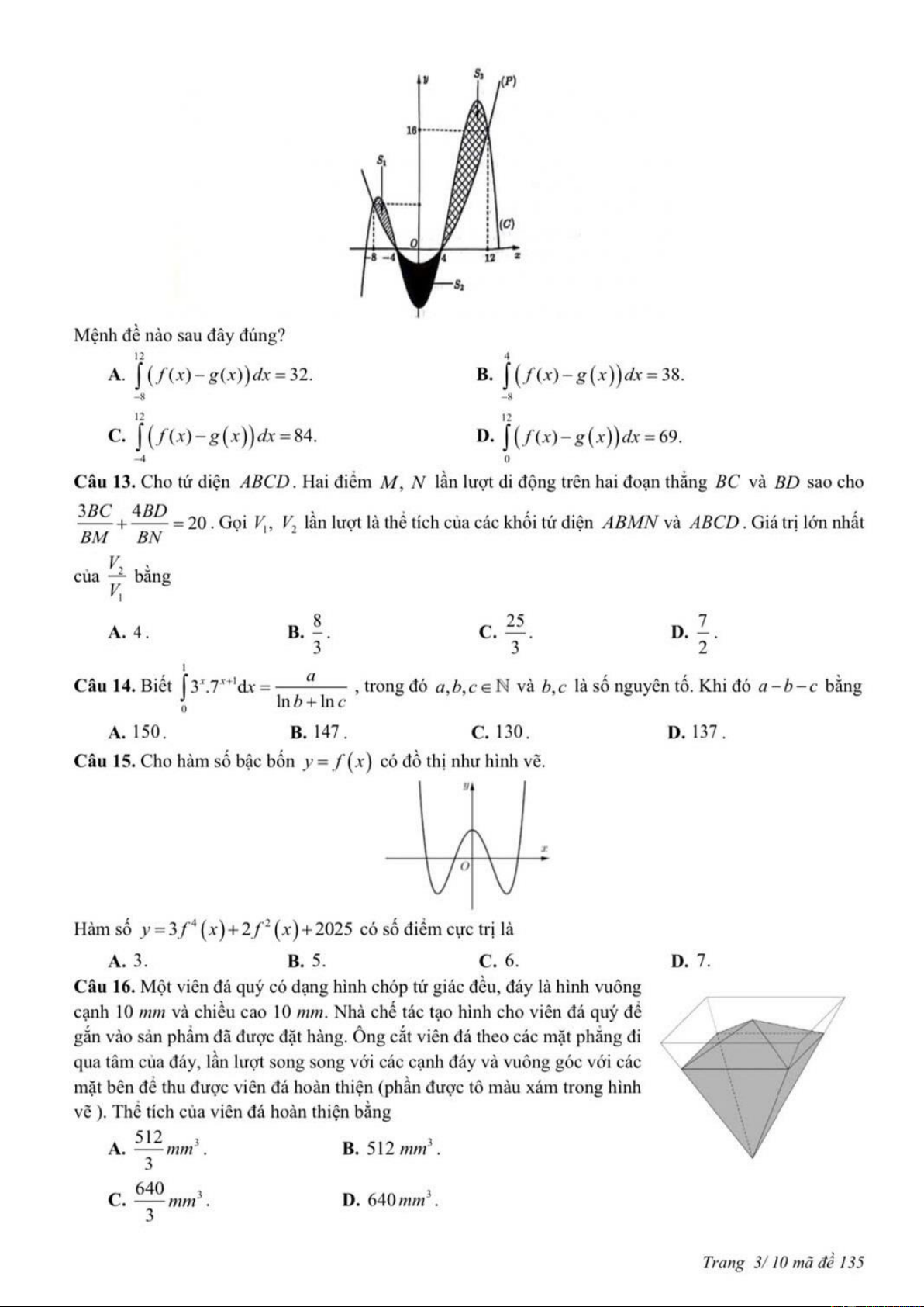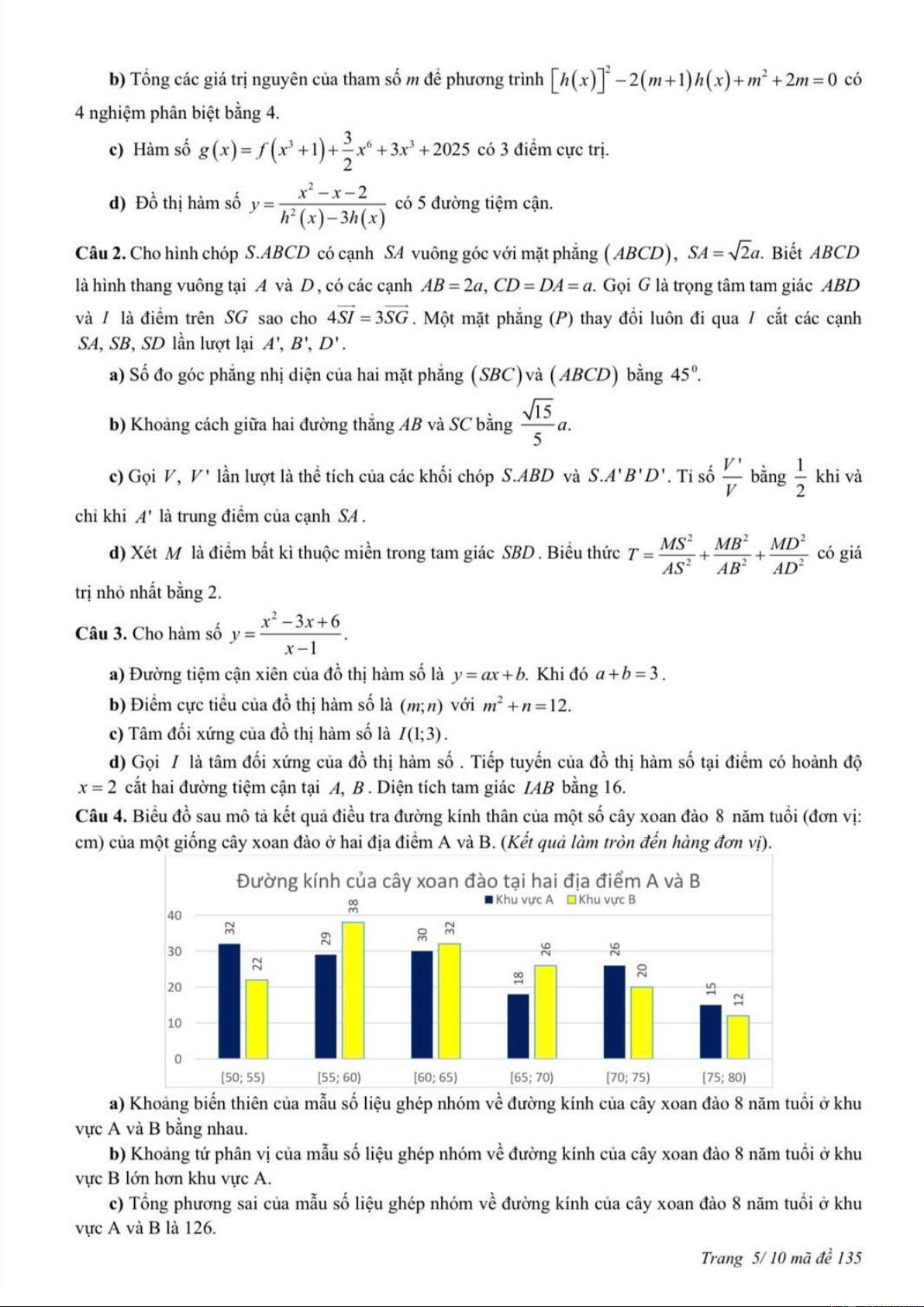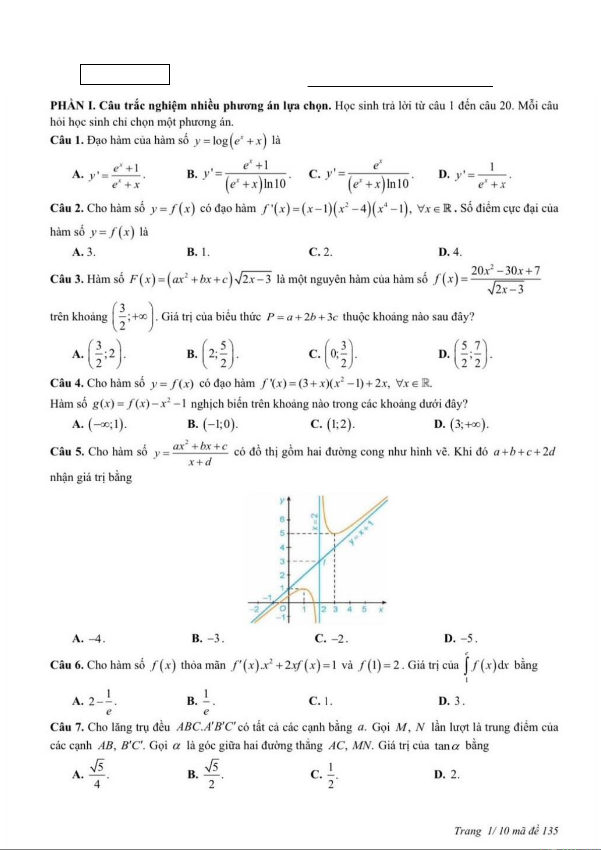 MÔN TOÁN – LỚP 12 THPT MÃ ĐỀ: 135