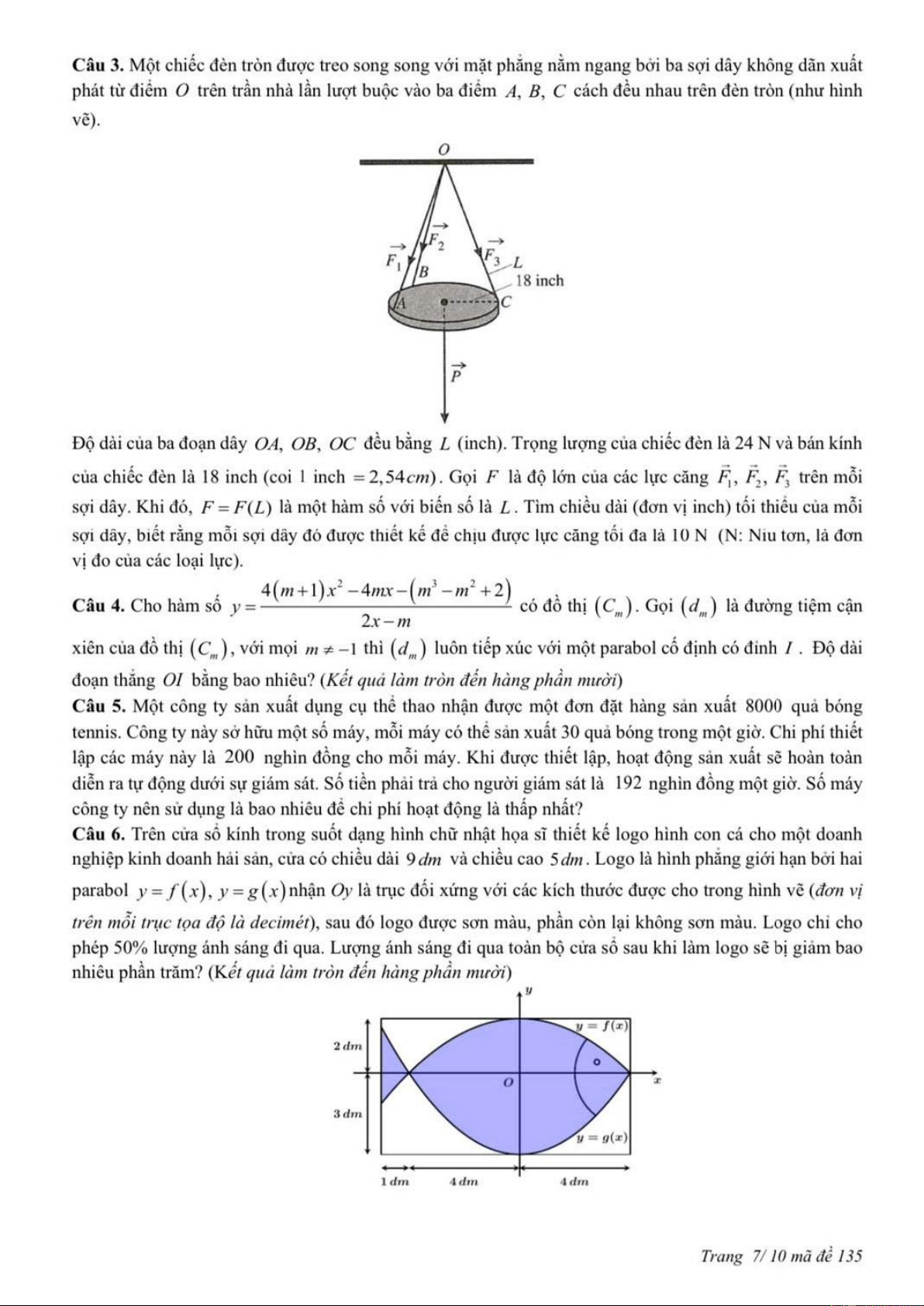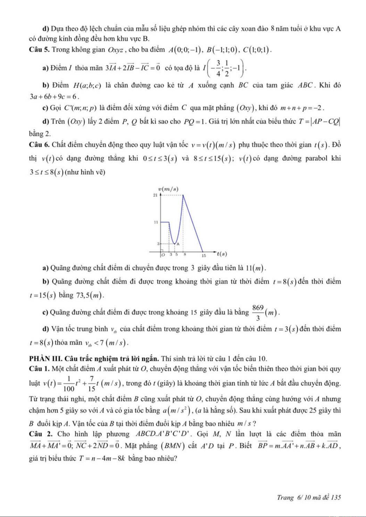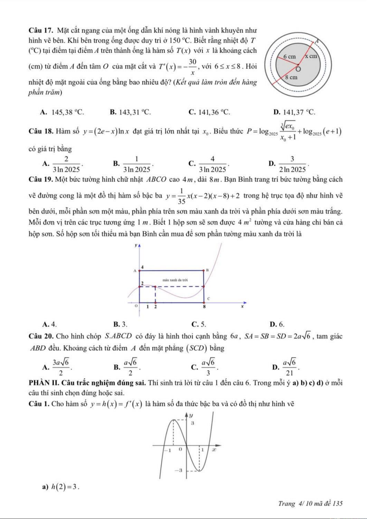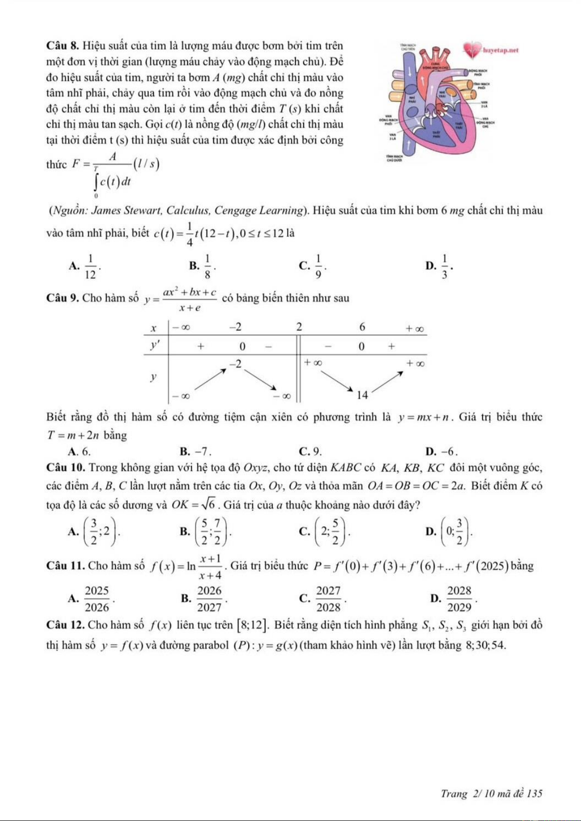 MÔN TOÁN – LỚP 12 THPT MÃ ĐỀ: 135