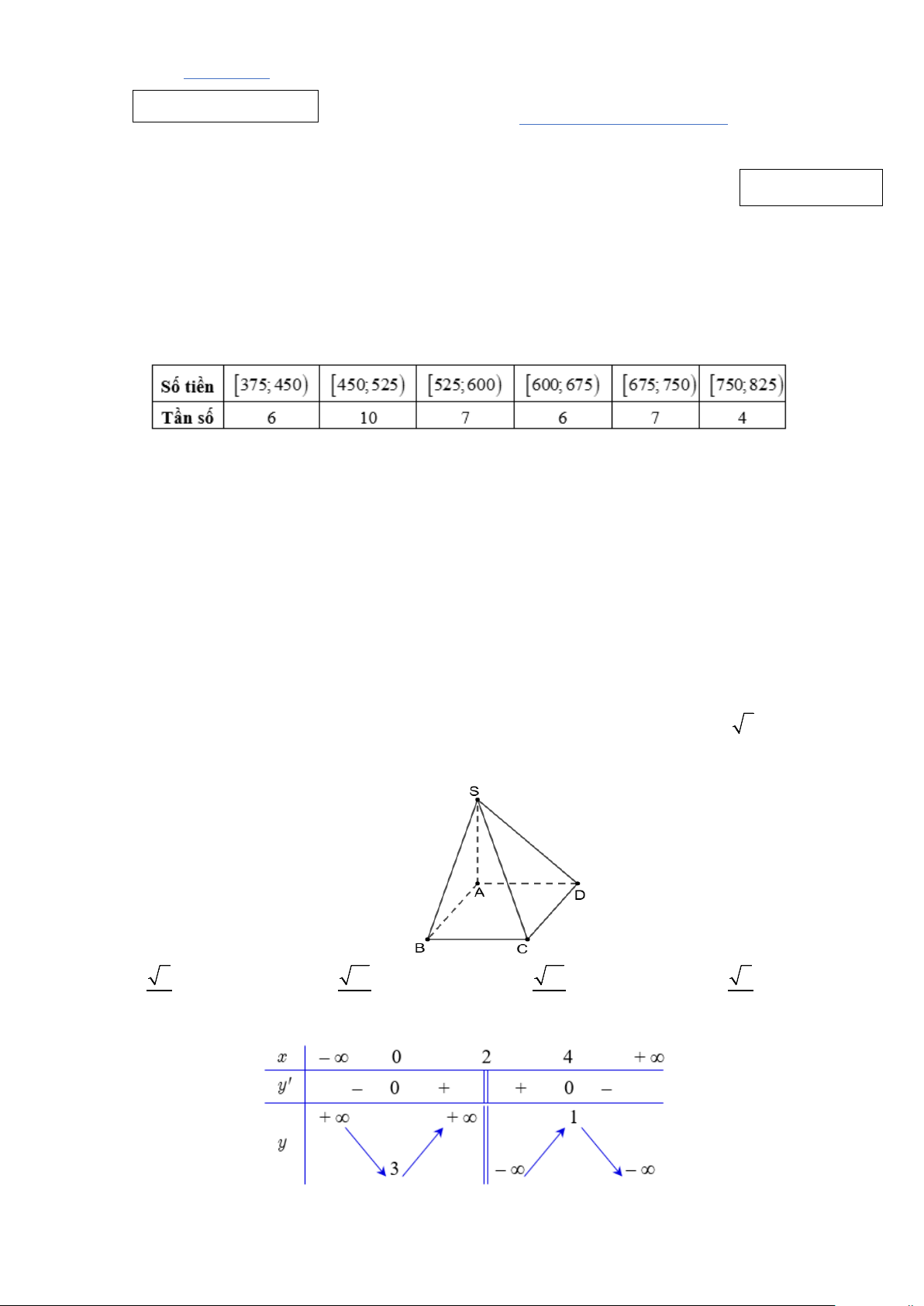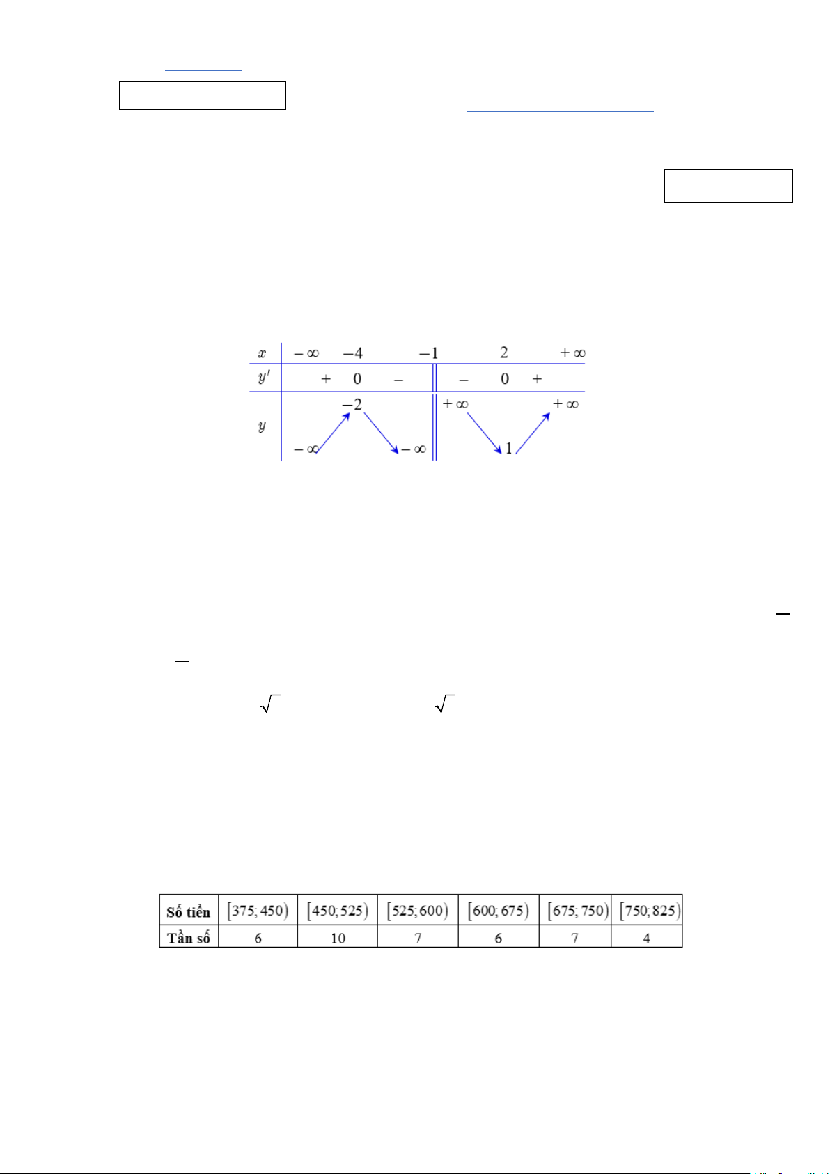 Câu 1: Cho hàm số y = f (x) có bảng biến thiên như sau: