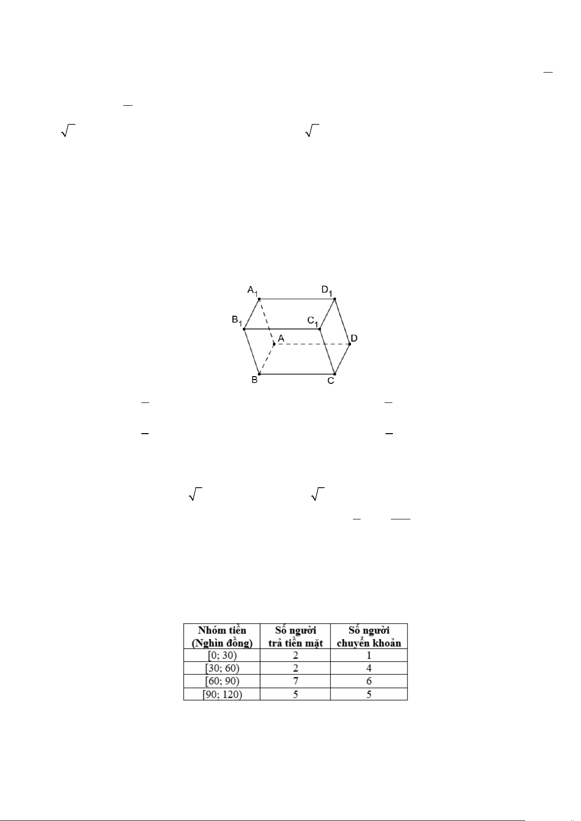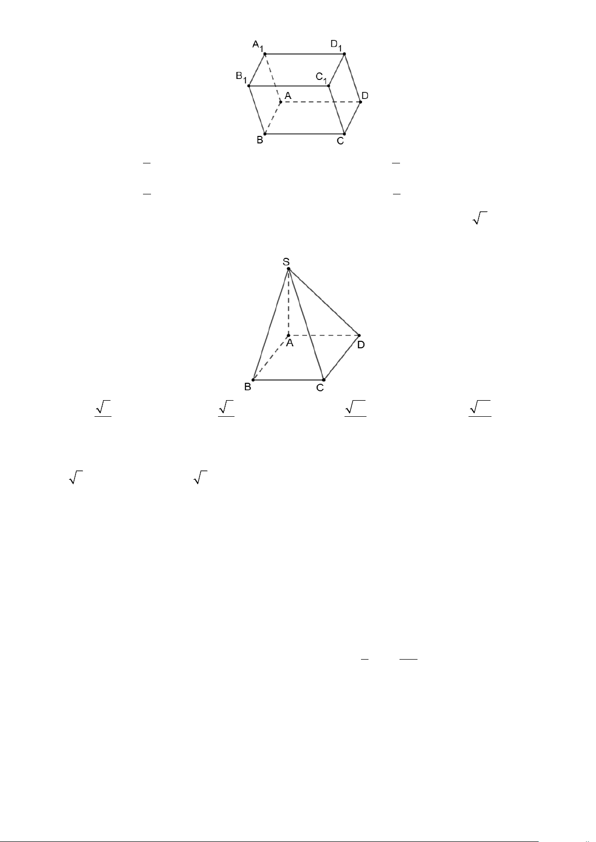 phẳng ( ABCD) góc 45°.Thể tích khối hộp đã cho bằng A. 30. B. 20 3 . C. 60 3 . D. 60 . Câu 12: 1 3