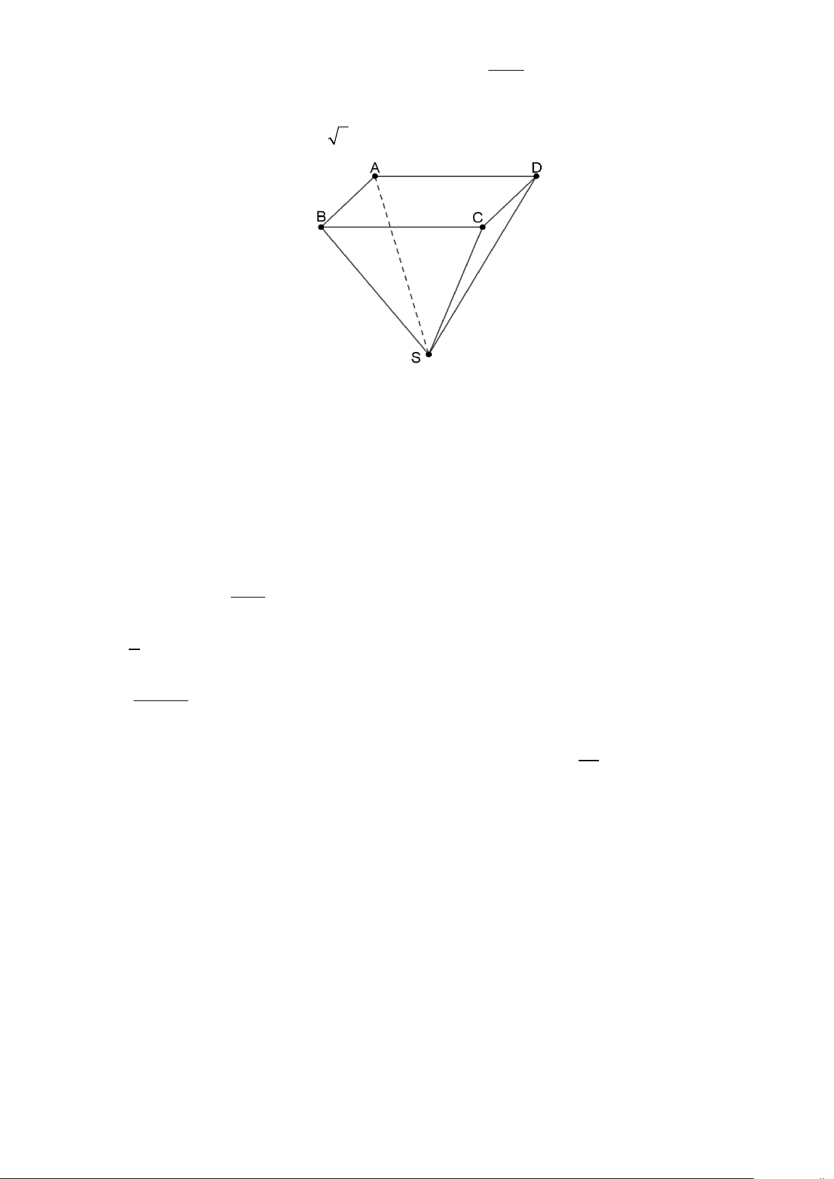 bởi giữa đường thẳng SB và mặt phẳng (SAC) . Khi đó α thỏa mãn hệ thức nào sau đây? A. 2 cosα = . B. cos 14 α = . C. cos 14 α = . D. 2 cosα = . 4 4 8 8