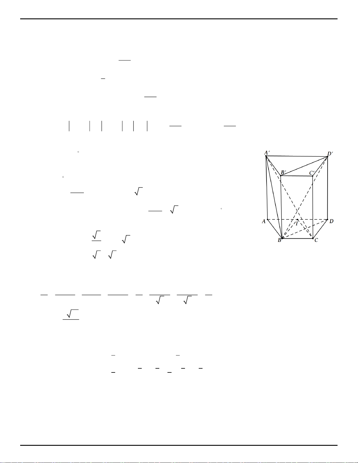 Câu 2. Cho hình lăng trụ đứng ABCD.A′B′C′D′ có đáy là hình thang cân, AB = BC = CD = 2,