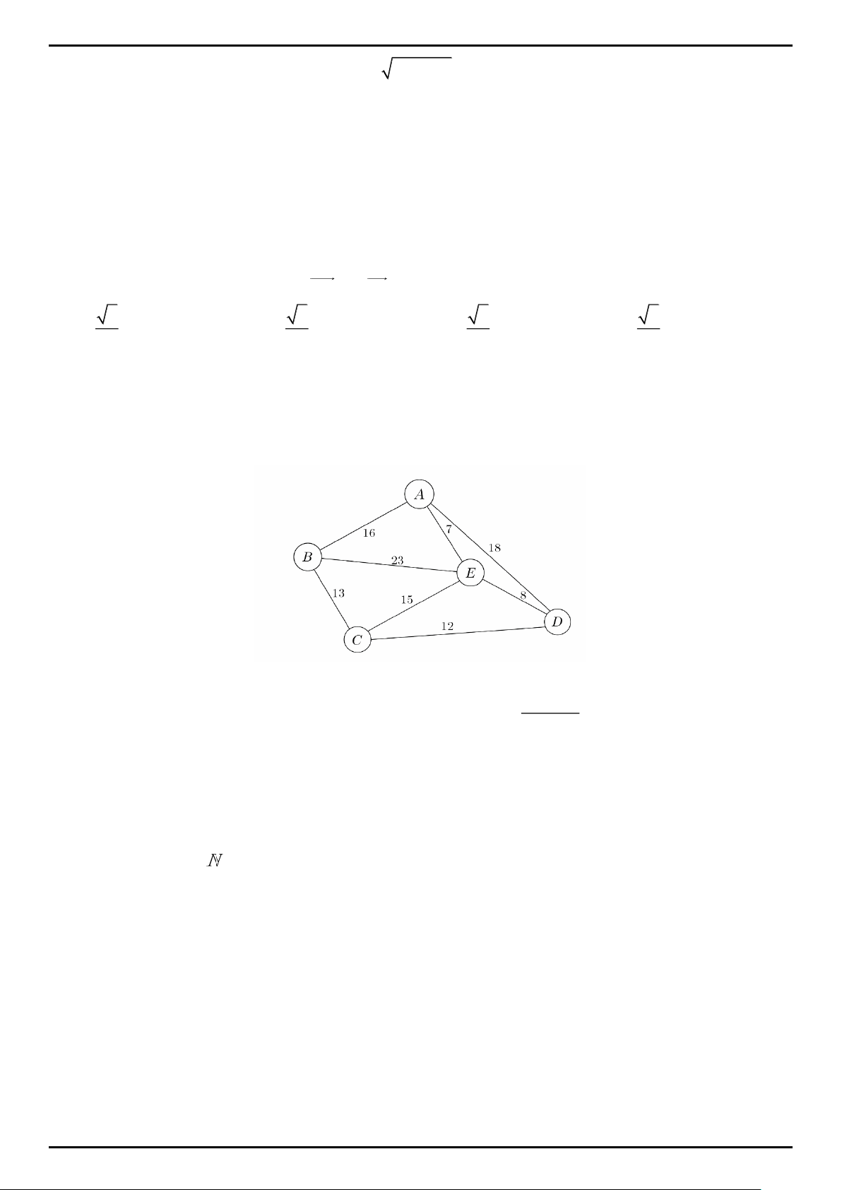 Câu 11. Anh Hà đang ở địa điểm A và cần chuyển hàng hóa gấp tới bốn địa điểm B, C, D, E. Anh Hà