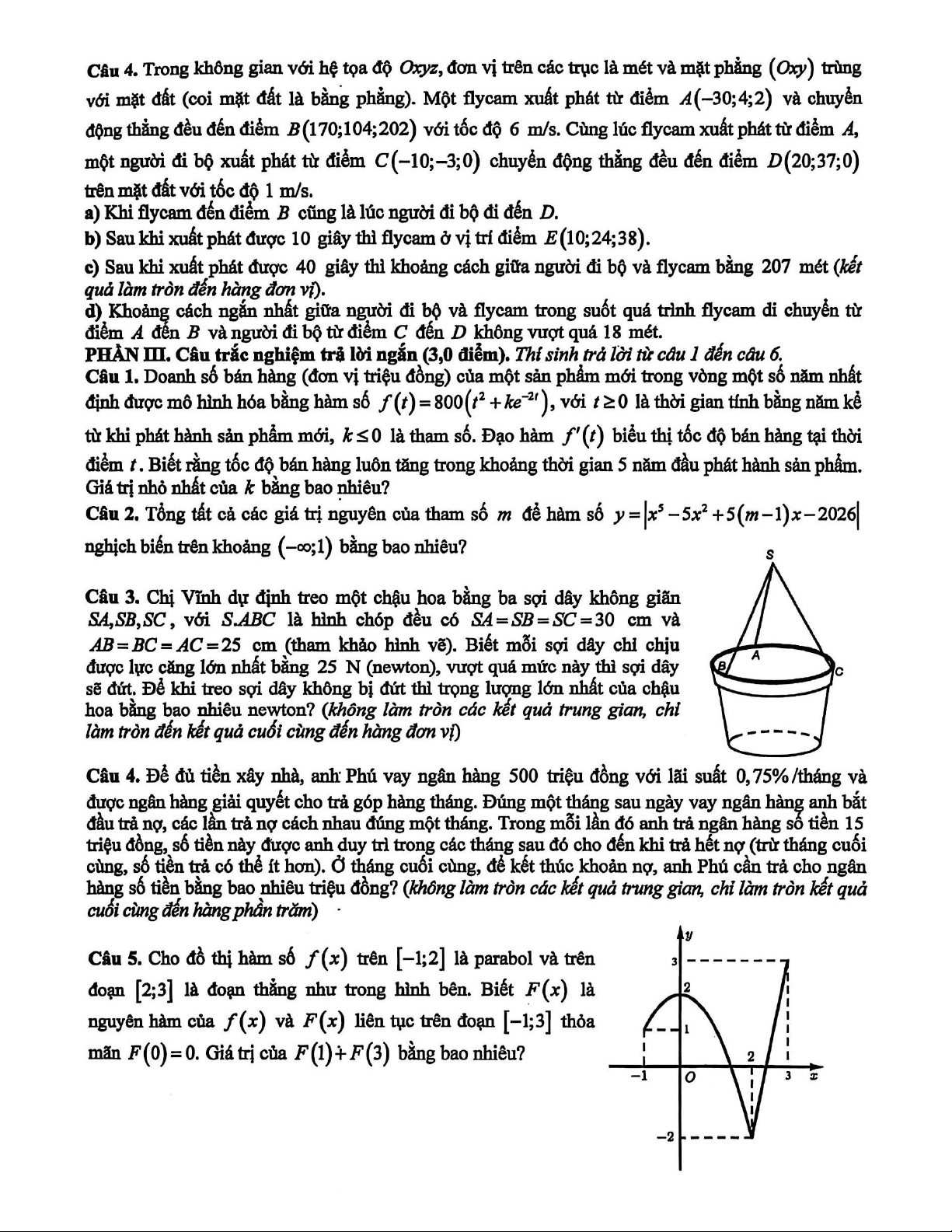 Đề chọn học sinh giỏi tỉnh Toán 12 năm 2025 – 2026 sở GD&ĐT Phú Thọ