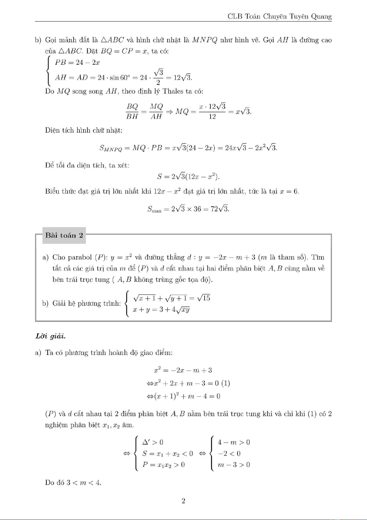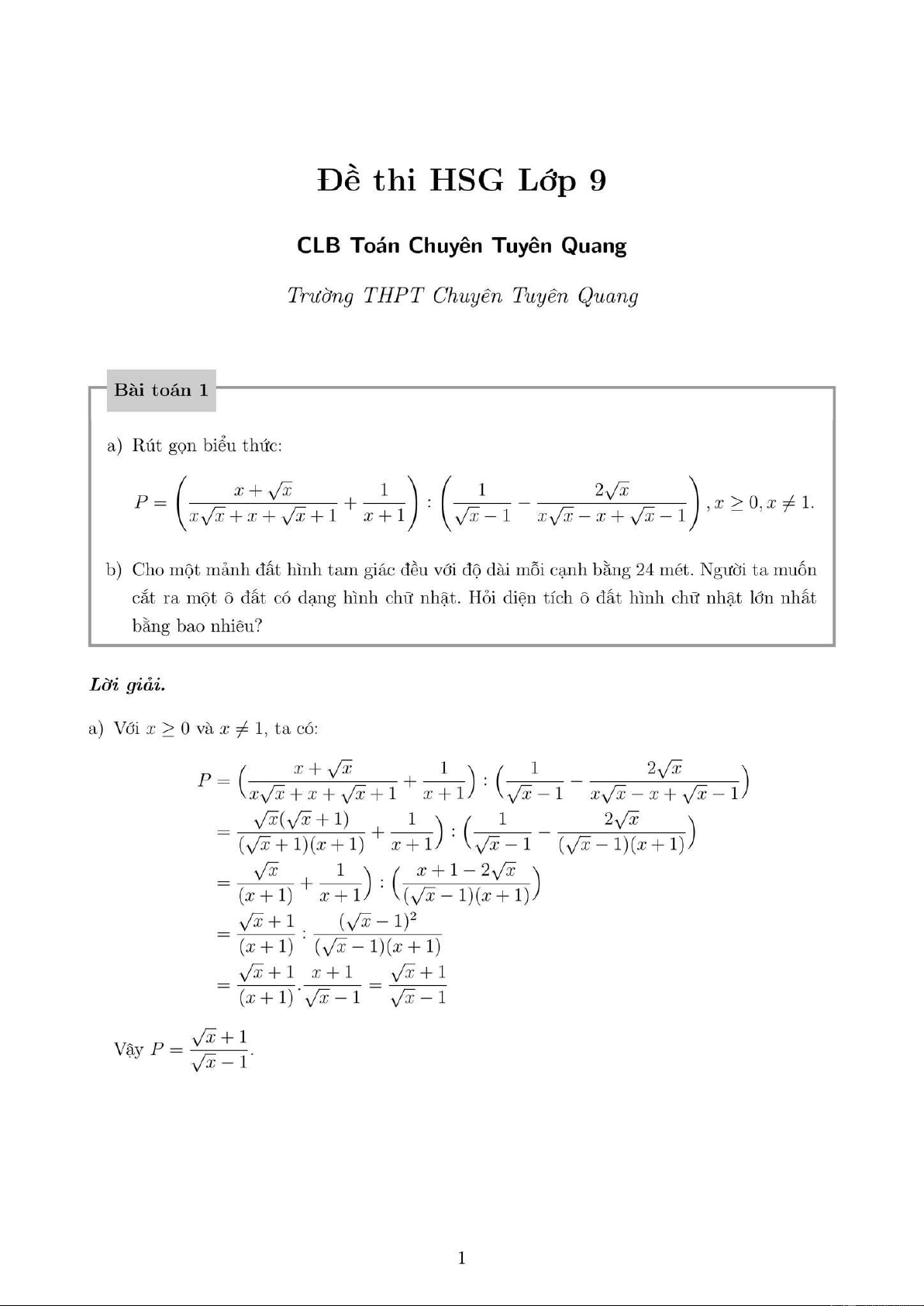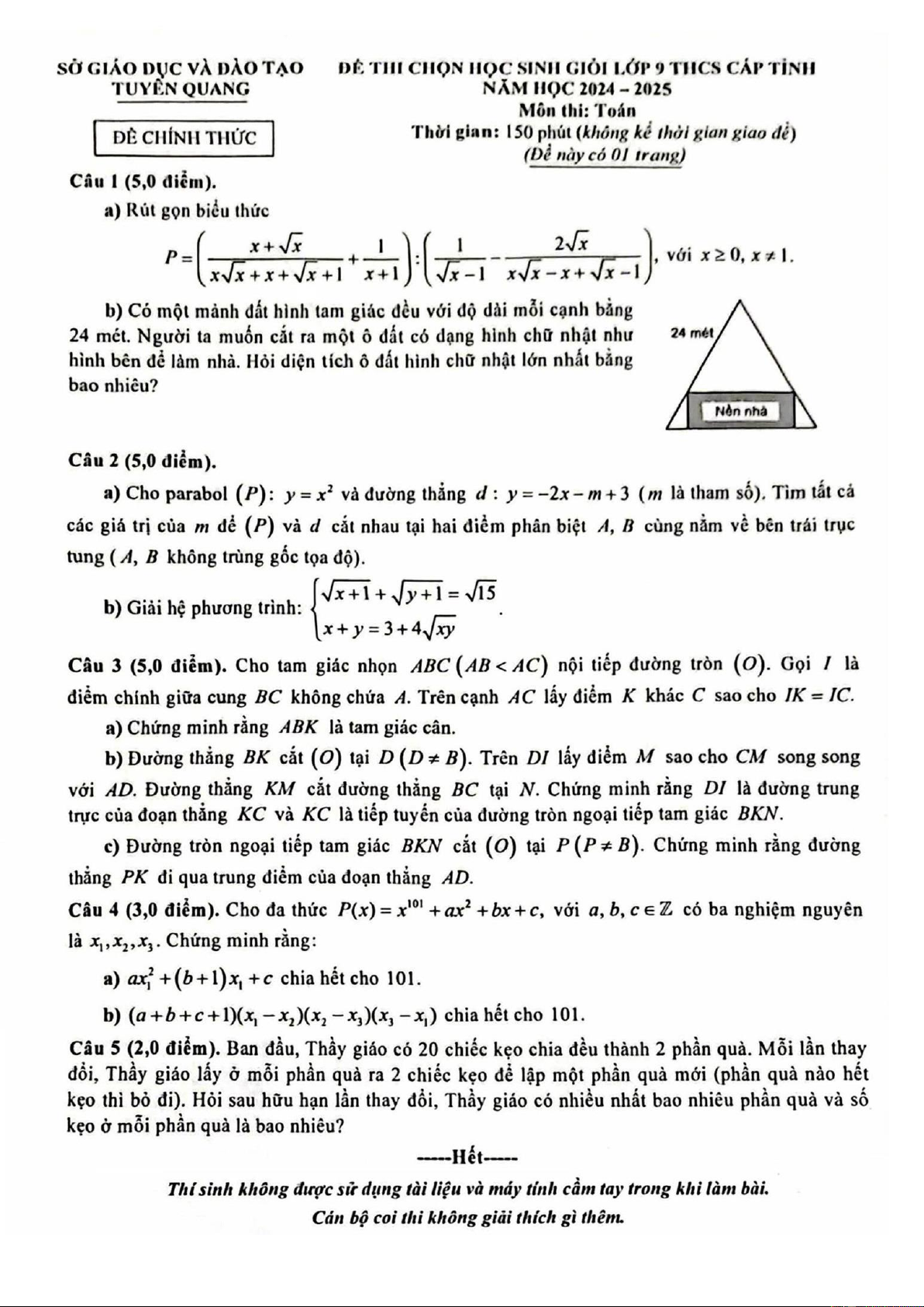 Đề chọn học sinh giỏi tỉnh Toán 9 năm 2024 – 2025 sở GD&ĐT Tuyên Quang