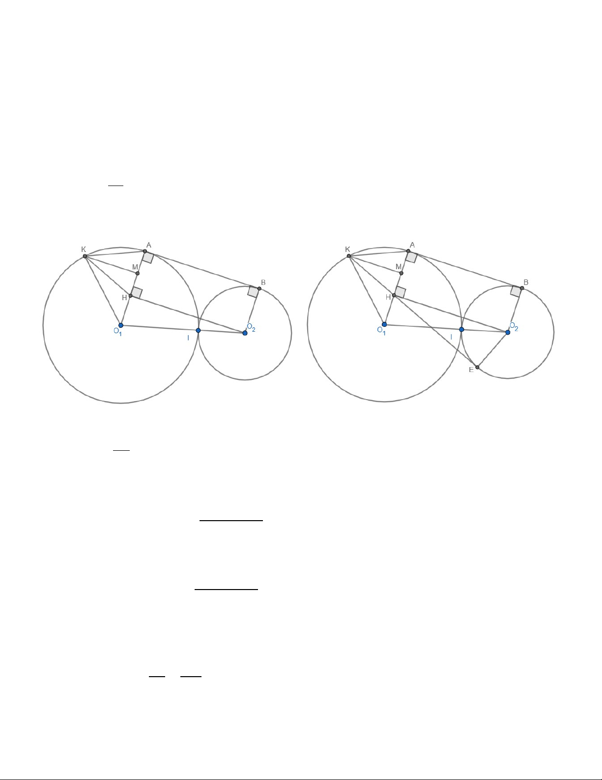 b) Đường thẳng KH tiếp xúc với (O2; r). Bài giải: Hình 1 Hình 2