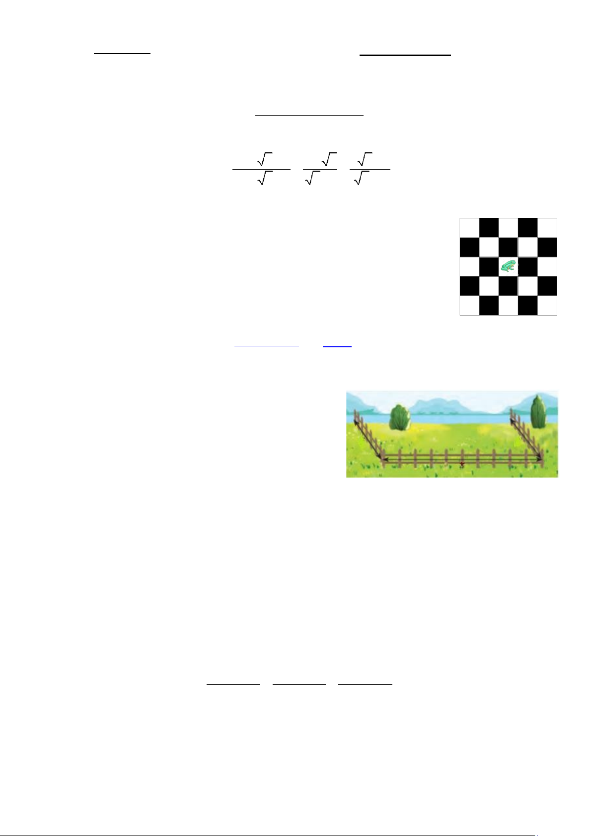 chung cạnh hoặc chung đỉnh với ô trước đó. Tính xác suất sau hai bước nhảy con ếch ở ô màu đen.