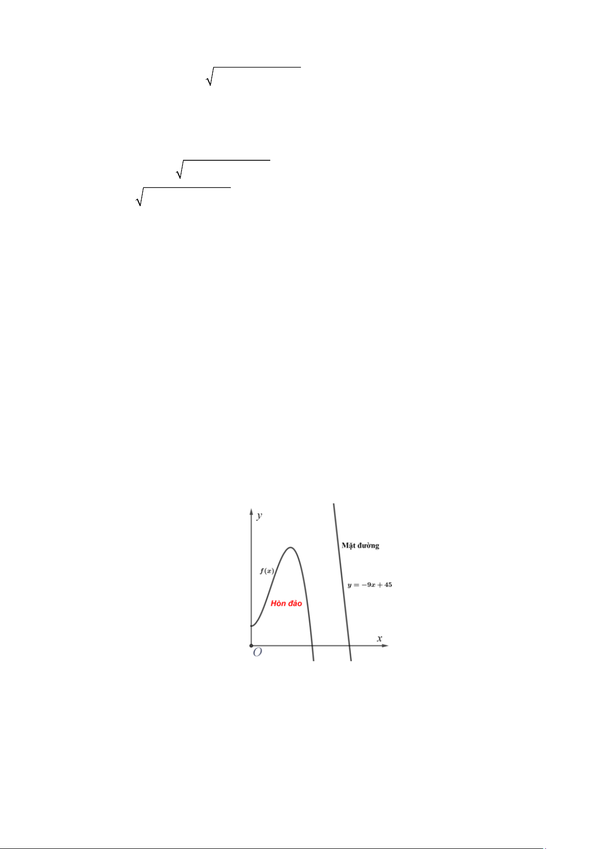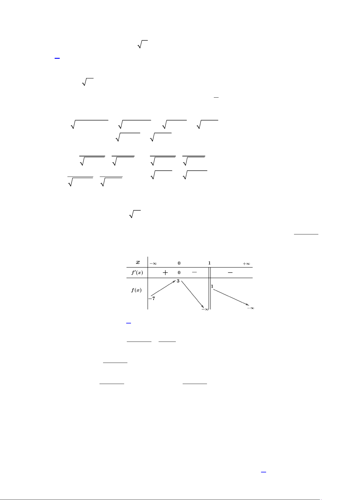 Câu 2: Khoảng cách giữa hai điểm cực trị của đồ thị hàm số x + x + 9 y = bằng x +1 A. 2 2 . B. 6 5 . C. 4 5 . D. 3 2 . Lời giải 9 9 x = 2 y = 5 Ta có y = x + ⇒ y ' =1− = 0 ⇔ ⇒ x +1 (x + )2 1 x 4 = − y = 7 −