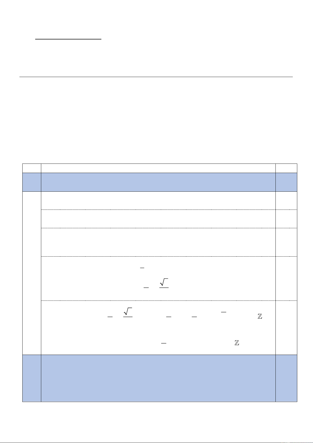 * Điểm của toàn bài là tổng điểm (không làm tròn số) của điểm tất cả các câu. Câu Nội dung Điểm Giải phương trình 1a
