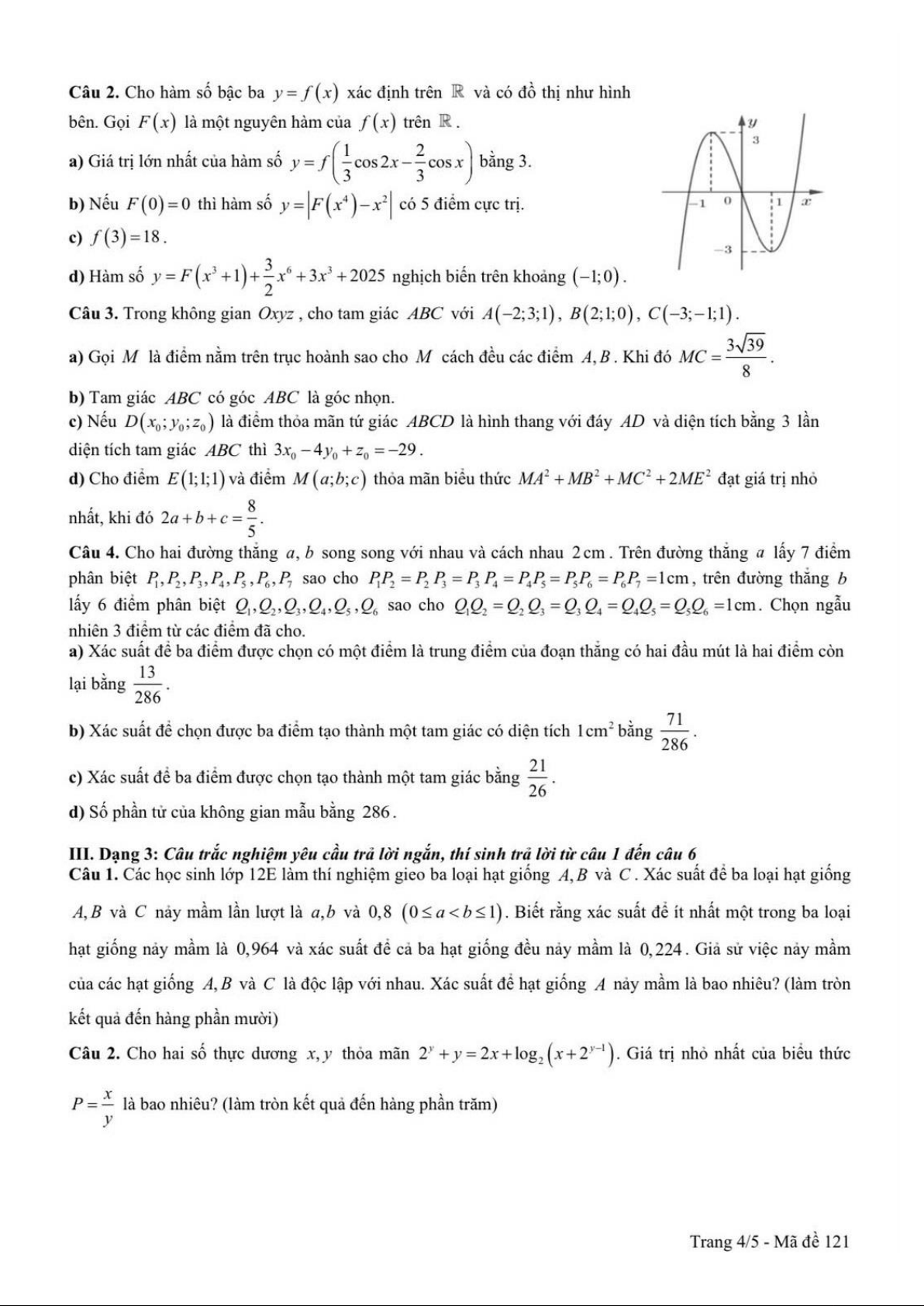 Đề giao lưu HSG Toán 12 năm 2024 – 2025 cụm THPT Nông Cống 2 & 3 – Thanh Hóa