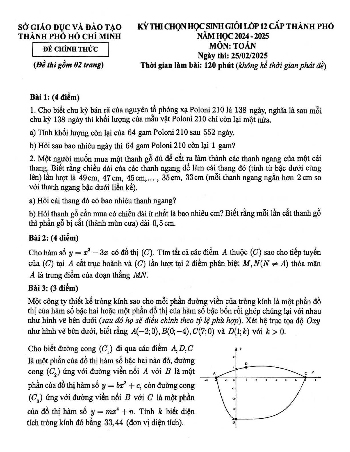 HSG Toán 12 Tp. HCM năm 2024-2025