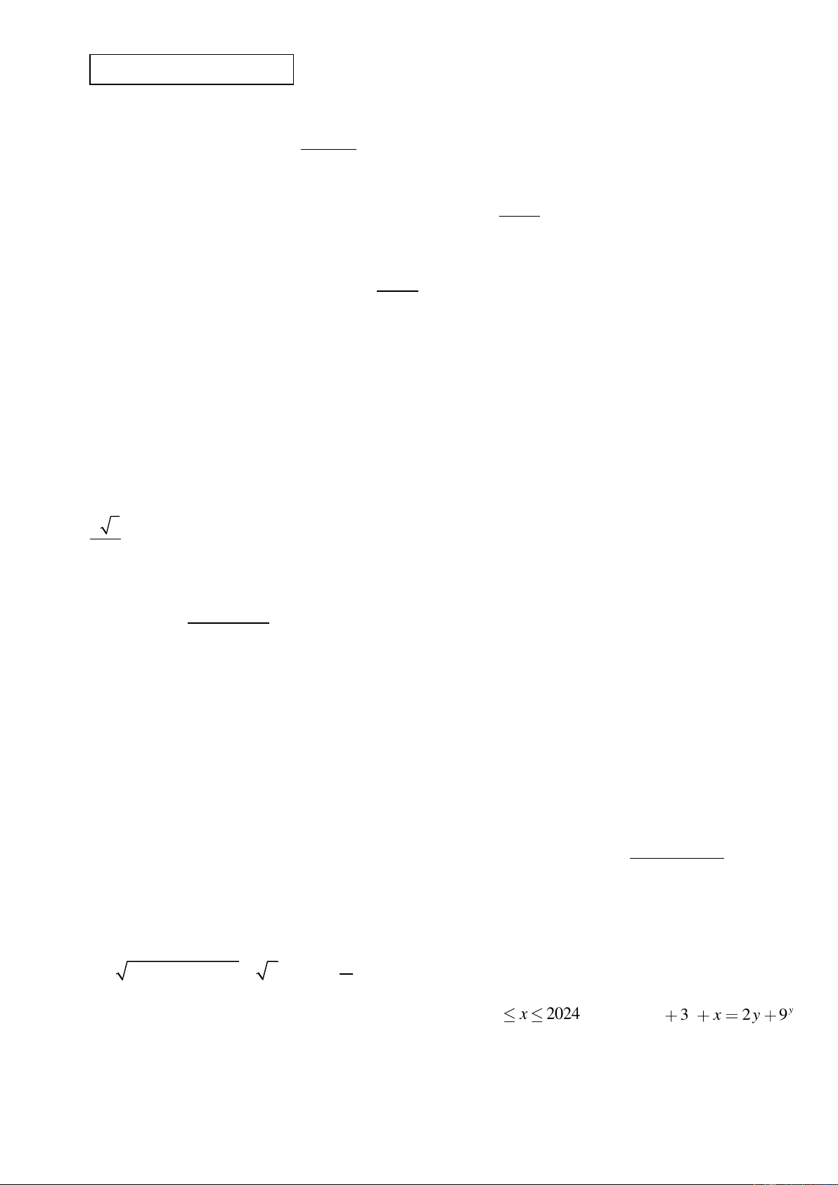 Câu 10. (2.0 điểm) Có bao nhiêu cặp số nguyên x ; y thỏa mãn 0 x 2024 và log 3 3 2 9y x x y 3
