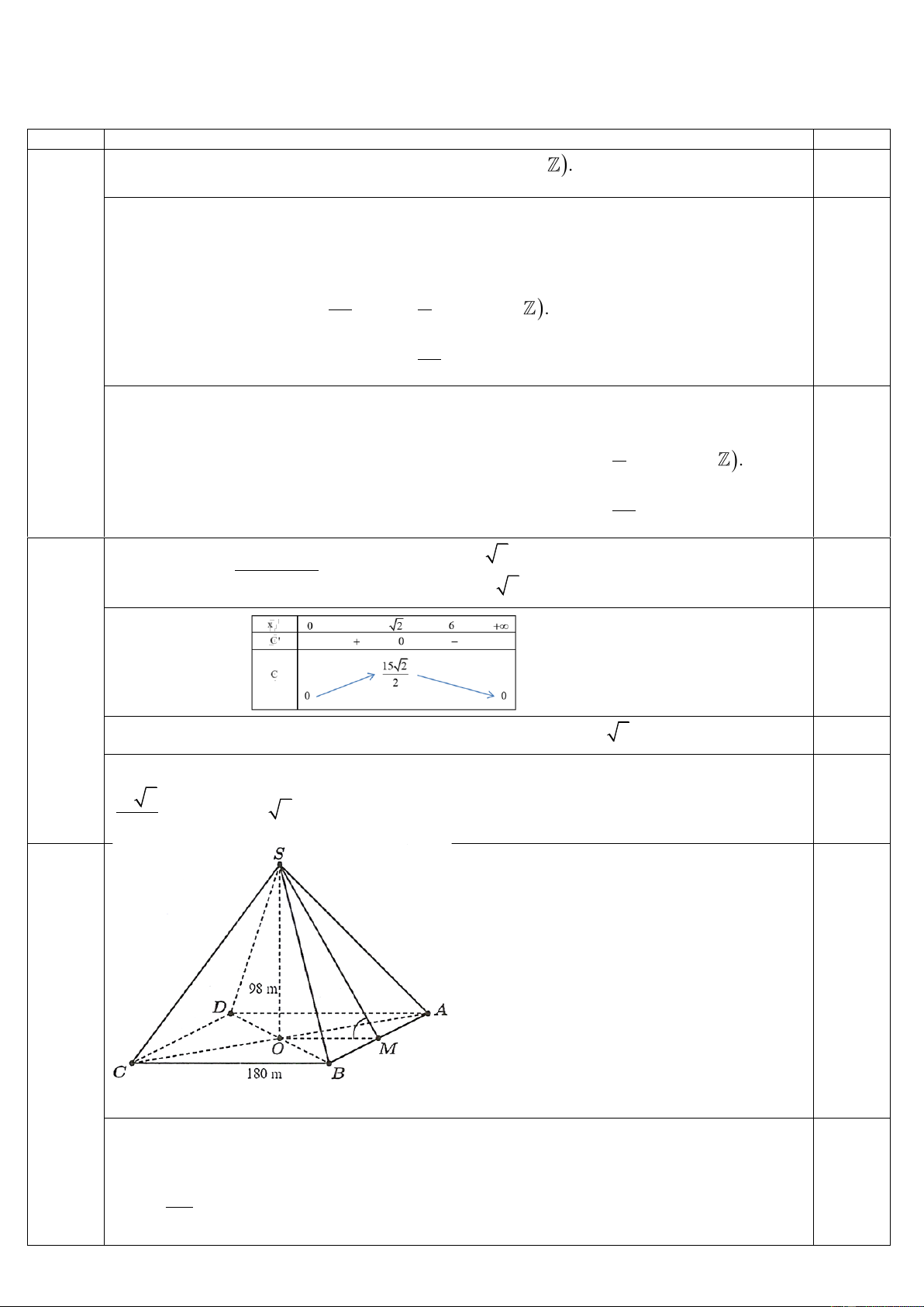 Lưu ý: Mọi cách giải khác đáp án mà đúng đều cho điểm tối đa. CÂU ĐÁP ÁN ĐIỂM