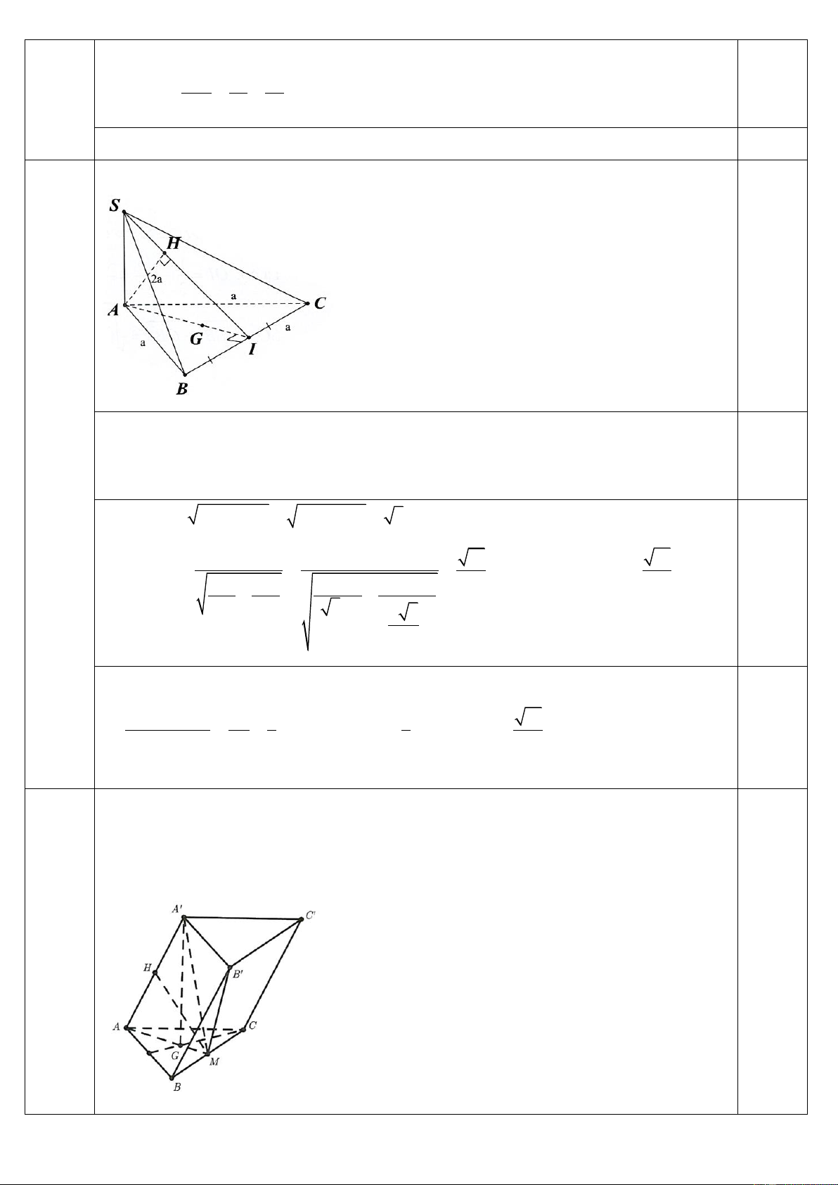 BC ⊥ (SAI) BC ⊥ AH . Ta lại có: BC ⊥ AI 0,5 Câu 4 ⊥ ⊥ = (2,0 đ) AH SI AH (SBC) d ( , A (SBC)) AH Ta có: 2 2 2 2 SA =