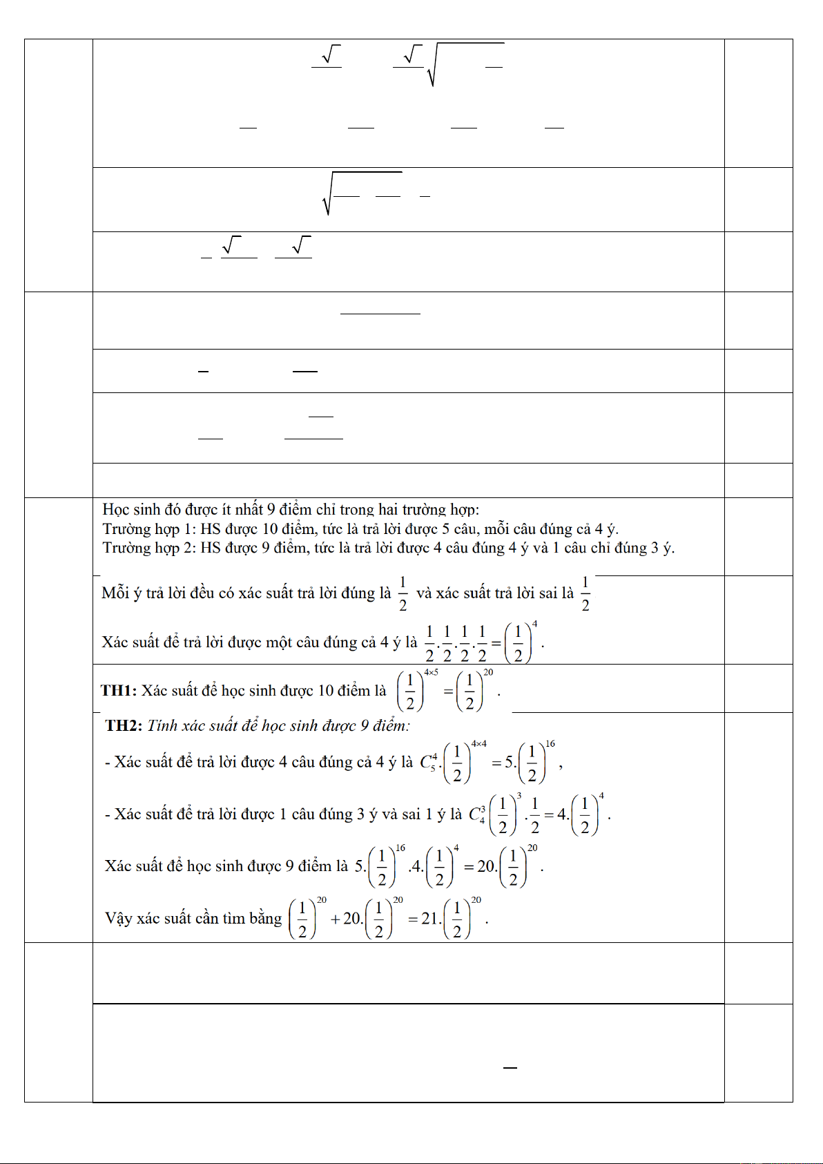 - Học sinh chỉ lựa chọn chính xác 02 ý trong 01 câu hỏi được 0,5 điểm.