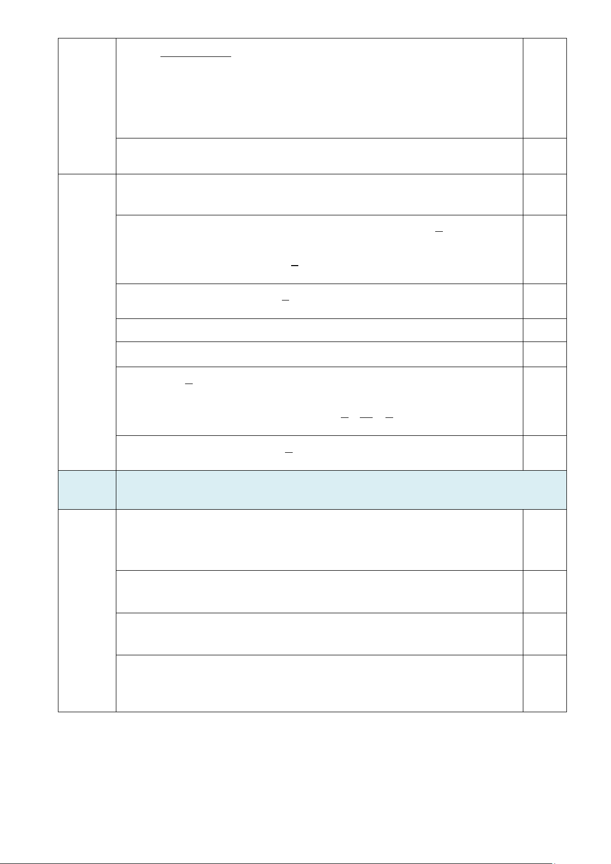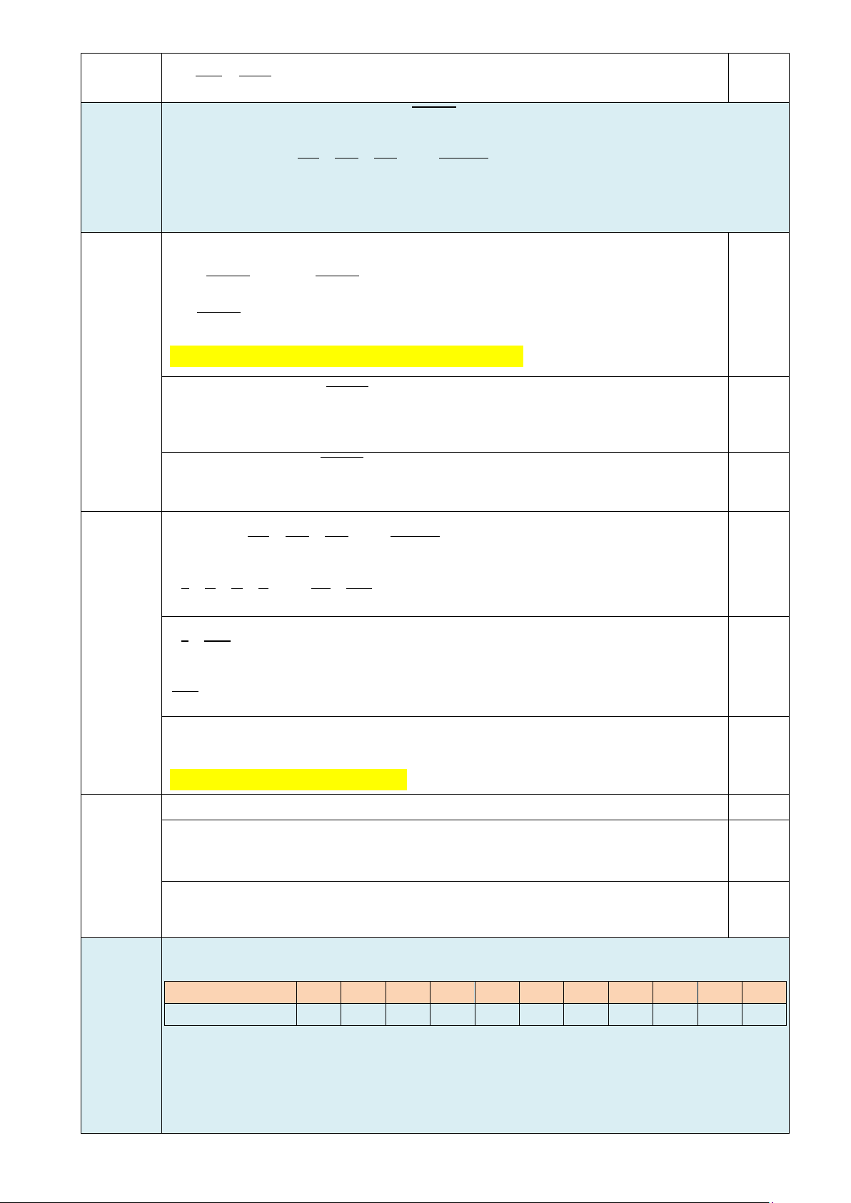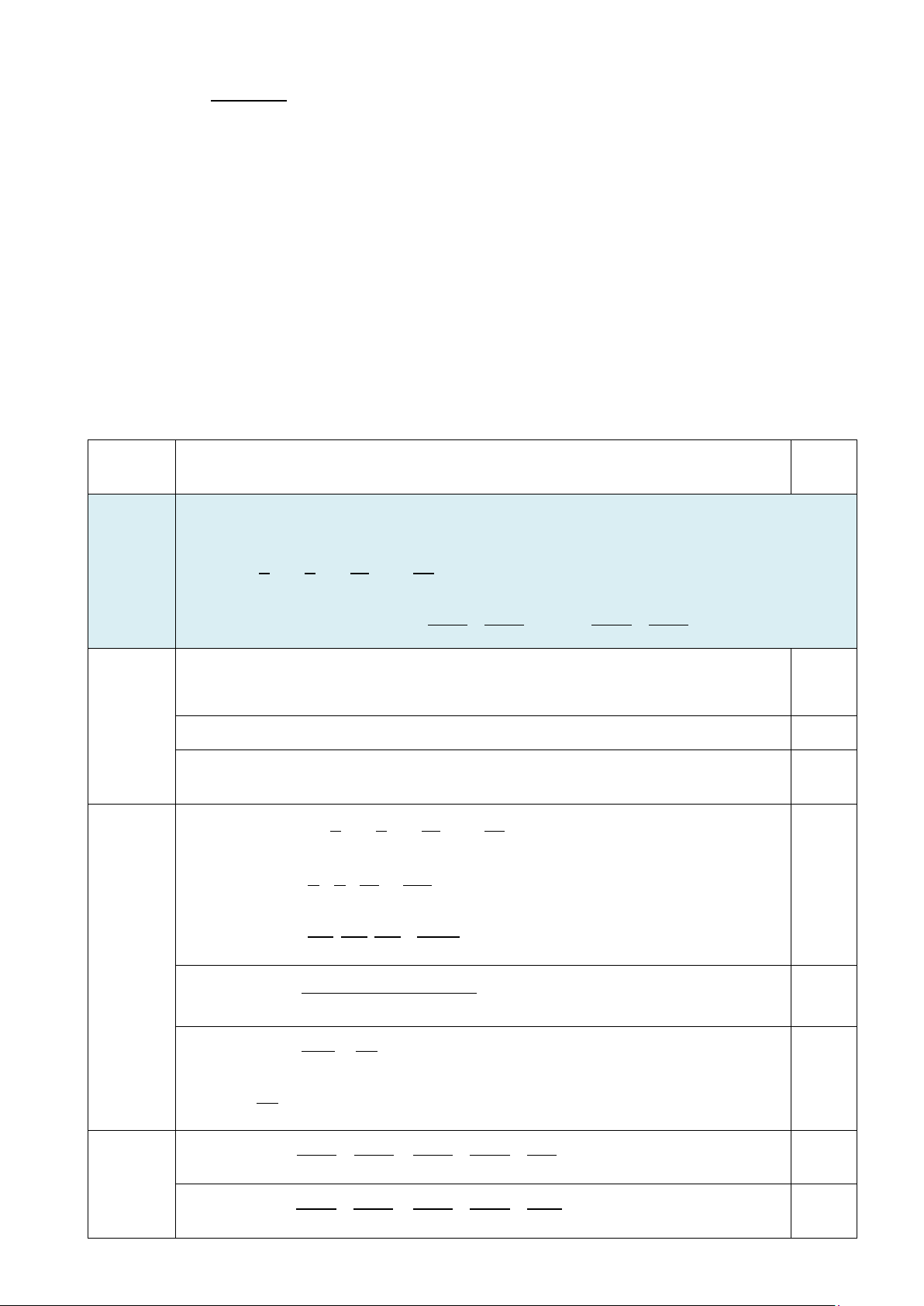 B 1 .1 .1 . .1 = 3 8 15 99 4 9 16 100 0,25 = . . ... 3 8 15 99 1.b 2.2 3.3 4.4 10.10 = . . ... 1.3 2.4 3.5 9.11 0,25 1,5 điểm (2.3.4...10)(2.3.4...10) = ( 1.2.3...9)( ) 3.4.5...11 0,5 10.2 20 = = 1.11 11 0,5 Vậy 20 B = 11 2025 2025 2025 2024 1 2 2) Ta có: C = + = + + 10 8 10 8 8 0,5 1,5 điểm 50 50 50 50 50 2026 2024 2025 2024 1 D = + = + + 10 8 10 8 10 0,5 50 50 50 50 50 Vì 1 1 >