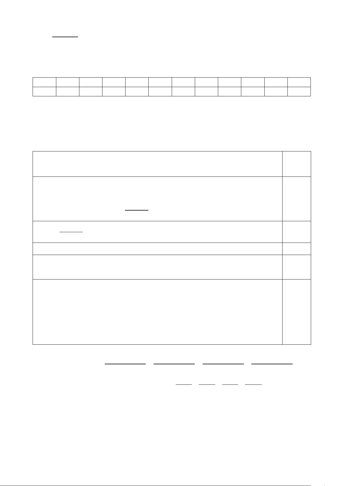 Câu 5. Cho đa thức F (x) thỏa mãn điều kiện F (x .x = F x .F x và F (2) = 5. Khi đó 1 2 ) ( 1) ( 2) F (16) bằng A. 5 . B. 25. C. 125 . D. 625 . Câu 6. Cho đa thức 2