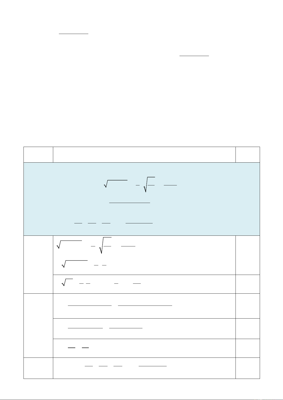 Tính đúng được số quyển vở nhận được của lớp 7A là 288, lớp 7B 0,5 là 240 và lớp 7C là 192. Ta có 2 x ≥ 0; 2x −1 ≥ 0 0,5 Nên 2 x + 2x −1 ≥ 0 suy ra 2 2 x + 2x −1 = x + 2x −1 + − = + 0,5 2) Ta có: 2 2 x 2x 1 x 3 1,5đ 2 2 x + 2x −1 = x + 3 2x −1 = 3